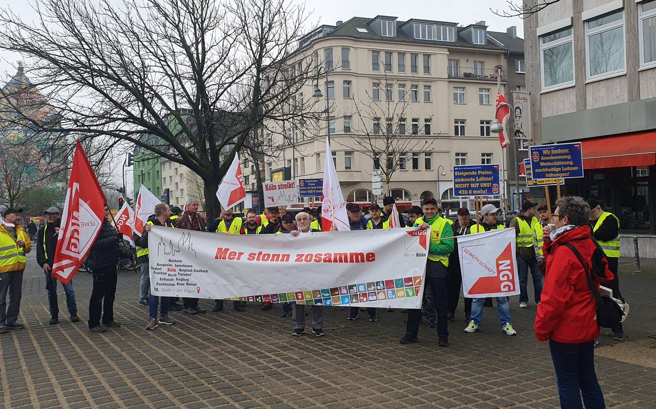 Um den Protest in der Stadt sichtbar zu machen, fuhr Donnerstagmittag ein roter Doppeldeckerbus mit den Streikenden durch Köln. Die nächste Verhandlungsrunde im Tarifstreit startet am kommenden Montag.