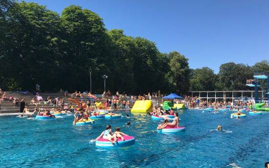 Von 14 bis 18 Uhr gibt es eine Open-Air-Poolparty inklusive Wasser-Parcours. Auf der Liegewiese legen DJs auf, es gibt einen Hula-Hoop-Wettbewerb und wer will, kann beim Weltrekordversuch im Badekappenfüllen mitmachen! Die Azubis der KölnBäder informieren außerdem alle Interessierten über den Beruf "Fachangestellte für Bäderbetriebe".