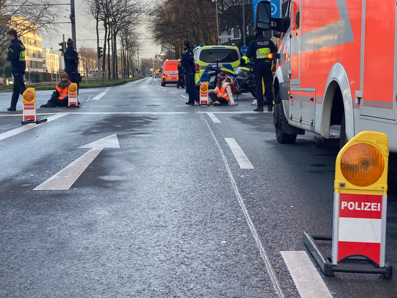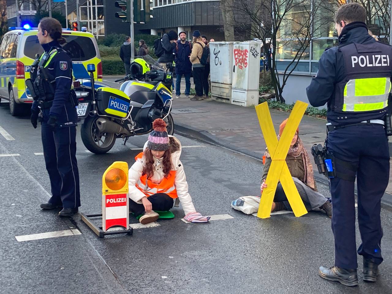 (DD) Die Klebeaktion von mehreren Aktivistinnen und Aktivisten in Junkersdorf ist beendet. Gegen 10:45 Uhr konnte die Polizei auch die letzte Aktivistin von der Straße holen.