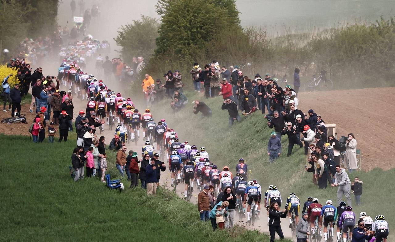Der Slowene schloss vor dem berüchtigten Wald von Arenberg wieder auf. Und dann erwischte es den Konkurrenten: Van der Poel hatte ein Defekt. Der Niederländer schnappte sich das Rad seines Teamkollegen, doch es passte nicht. So begann das lange Warten auf das Begleitfahrzeug. Van der Poel büßte so zwei Minuten auf die Spitzengruppe um Pogacar ein. Es wurde das erwartet hektische Rennen mit Stürzen, Platten und reichlich Dramatik.