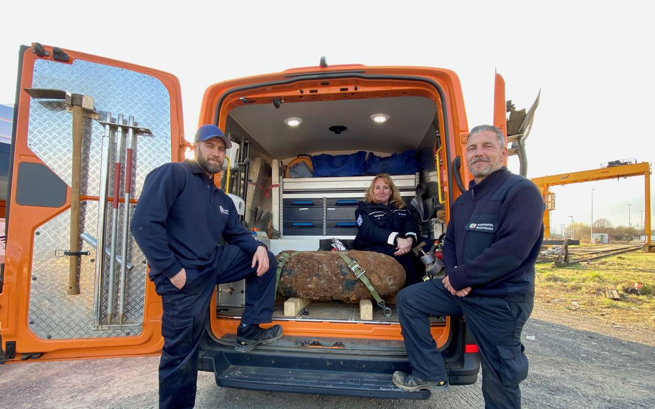 Köln geht mit einer Blindgängerentschärfung ins Wochenende. Arbeiter sind bei der Suche im Bereich des Rangierbahnhofs Gremberghoven, am blauen Stein fündig geworden. Es handelt sich um eine amerikanische Fünf-Zentner-Bombe mit Heckaufschlagzünder.
