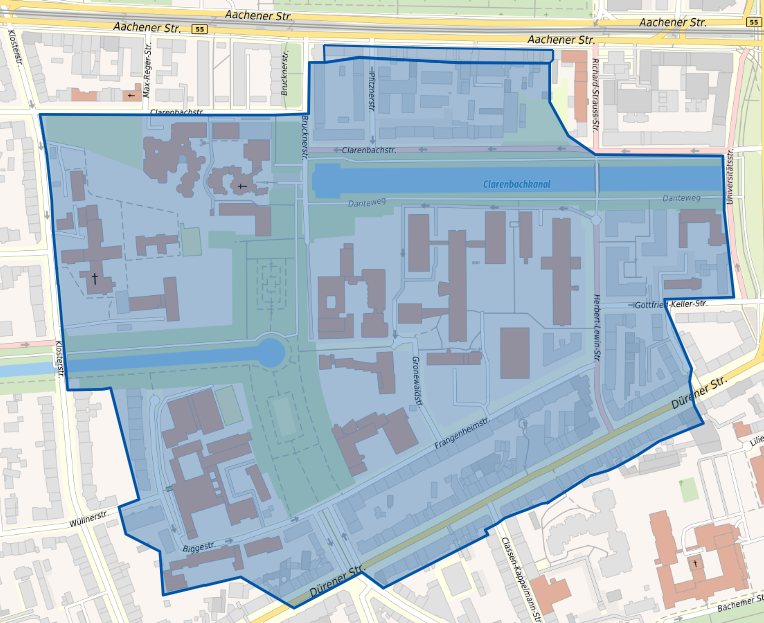 +++ 13:15: Diese Straßen werden jetzt gesperrt: Richard-Strauss-Straße ab Clarenbachstraße, Clarenbachstraße Ecke Universitätsstraße, Gottfried-Keller-Straße Höhe Hausnummer 6 Richtung Universitätsstraße, Dürener Straße zwischen den Hausnummern 56 und 132, Wüllnerstraße ab Hausnummer 3 Richtung Osten, Rautenstrauch- und Clarenbachkanal mit den zugehörigen Grünflächen und Wegen zwischen Kloster- und Universitätsstraße, Brucknerstraße ab Clarenbachstraße, Pfitznerstraße ab den Hausnummern 1 und 2a.