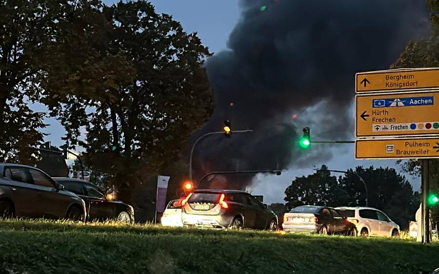 Die Lagerhalle an der Ecke Bonnstraße / Aachener Straße war von dem Brand betroffen. Wegen des Einsatzes und der starken Rauchentwicklung war auch die Aachener Straße dort gesperrt. In der Nacht war der Brand gelöscht, es fanden noch Nachlöscharbeiten statt. Die Brandursache ist noch unklar.