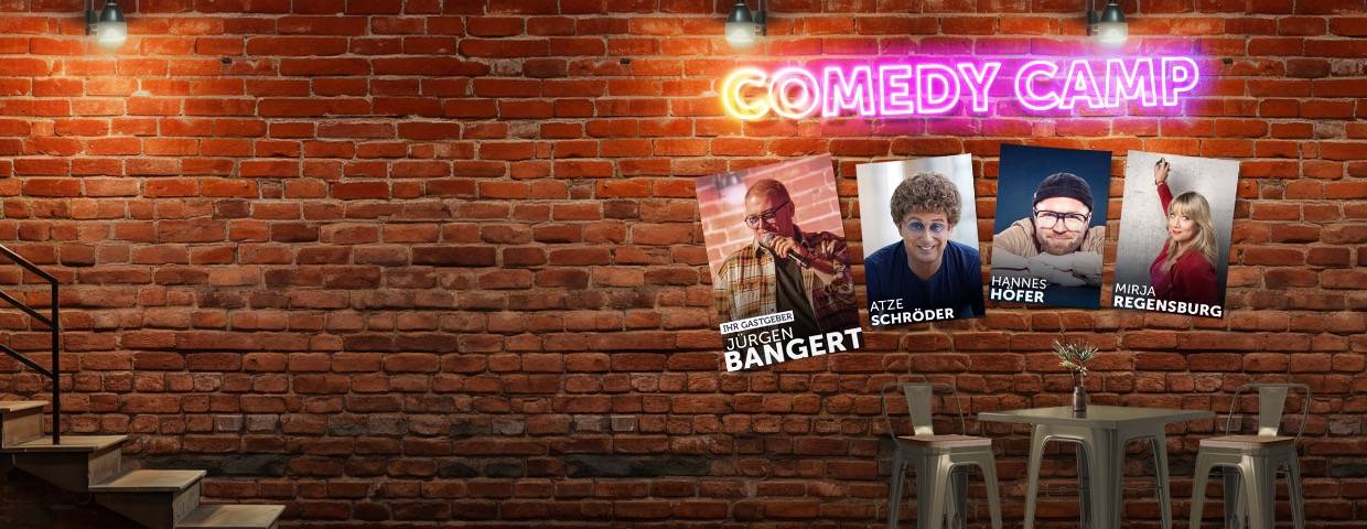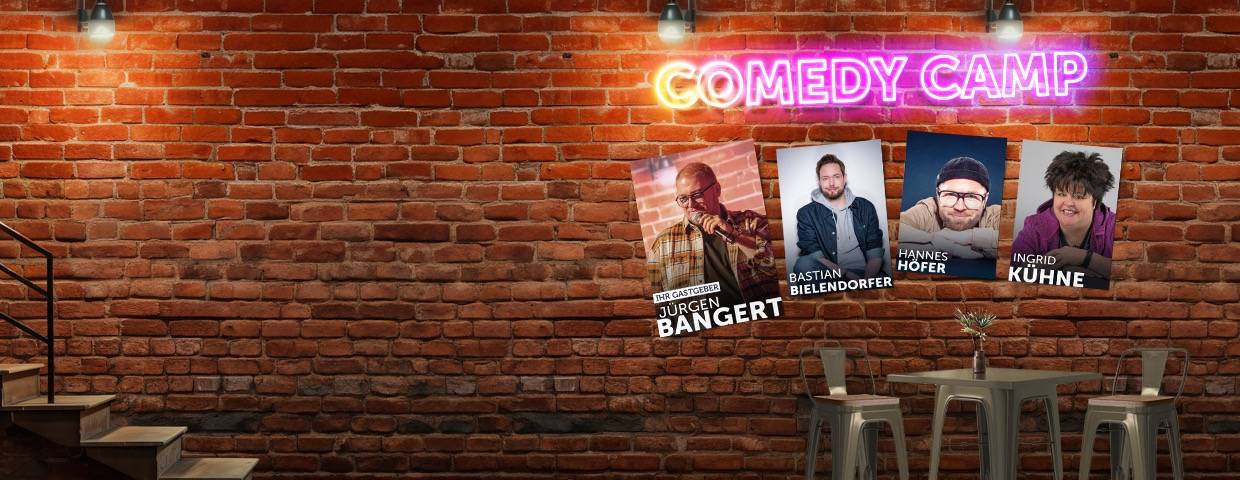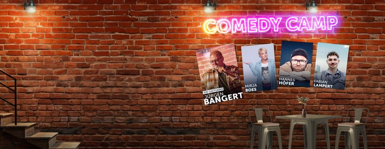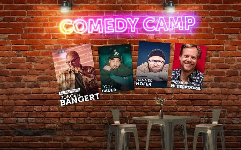 Wir starten die Comedy Camp Tour in Bergheim. Mit dabei sind unter anderem Bastian Bielendorfer, Ingrid Kühne und Hannes Höfer. Gemeinsam mit Gastgeber Jürgen Bangert erwartet euch ein abwechslungsreicher Abend mit verschiedenen Comedy-Stilen und jede Menge Lacher zum Auftakt der Tour.