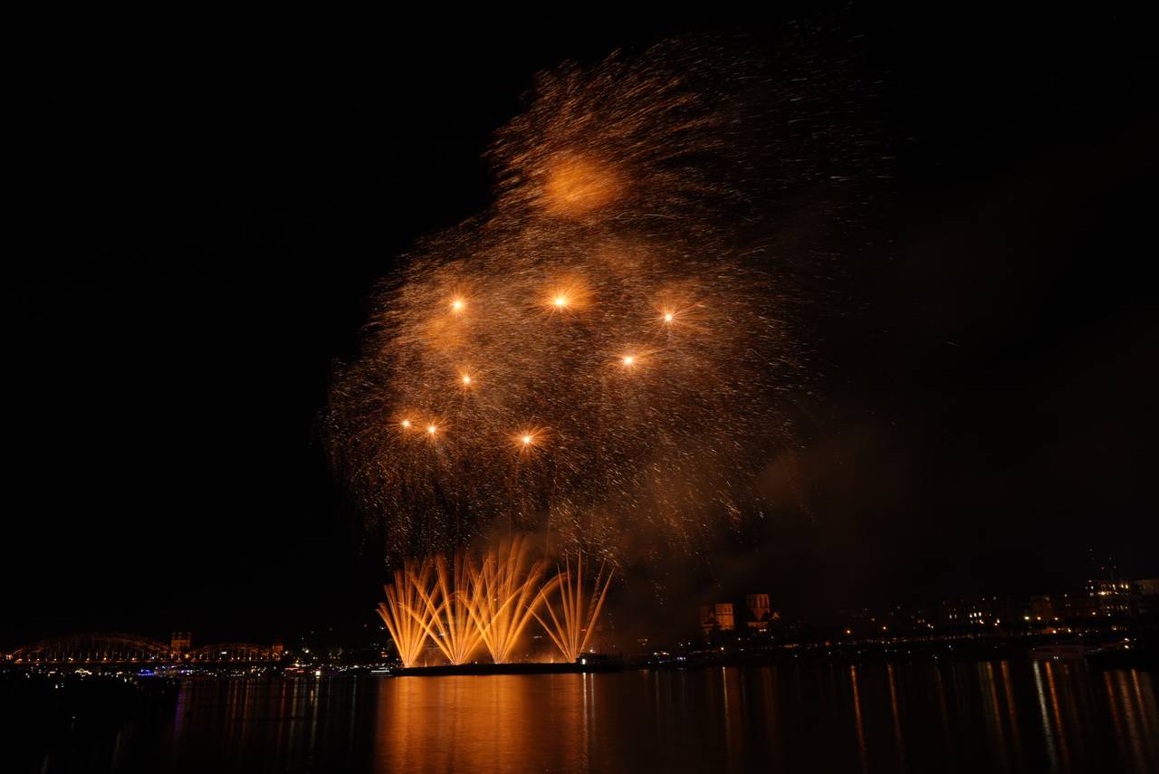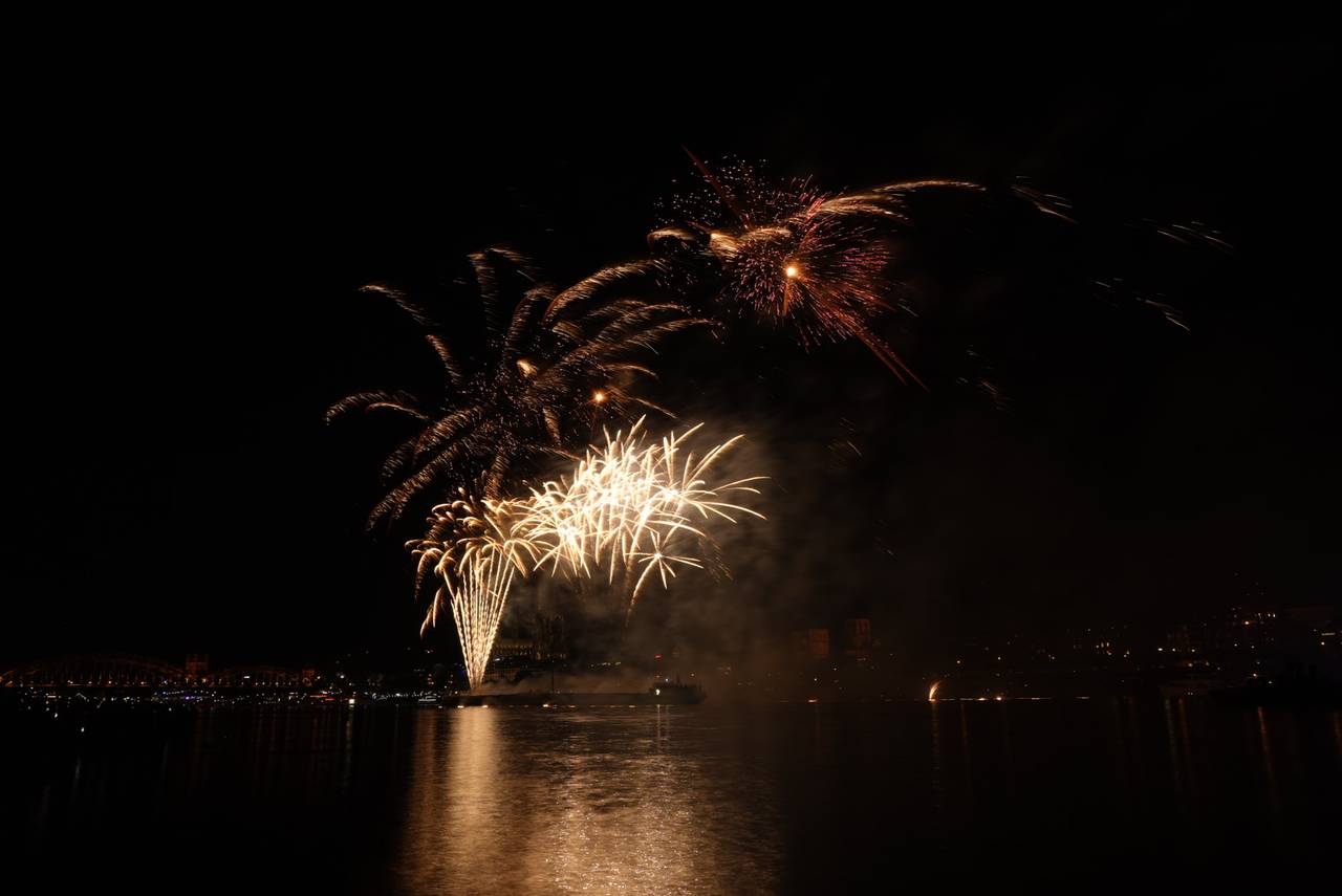 Das Feuerwerk wurde in den vergangenen Tagen im Niehler Hafen vorbereitet. Gut vier Tage hat das Experten-Team um Chef-Feuerwerker Georg Alef gebraucht, um das Feuerwerksschiff zu beladen und alle Komponenten miteinander zu verkabeln. Heute Abend dann brauchte es nur noch einen Knopfdruck, um das große Höhenfeuerwerk zu starten. Nach der langen Pause passte das Motto wie die Faust auf's Auge: "Das Phönix-Projekt". Zusätzlich war ein Schiffskonvoi von mehr als 20 Passagierschiffen unterwegs.