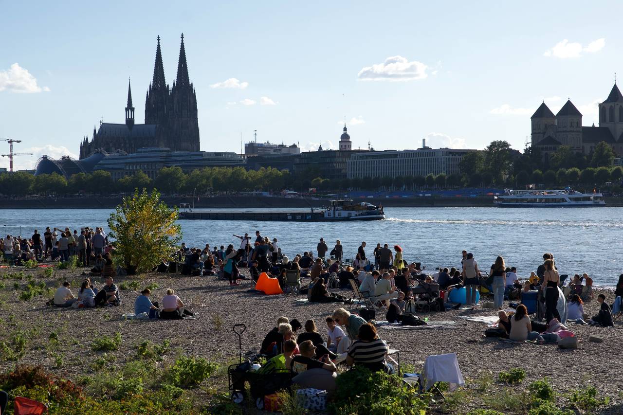 ++20:15 Uhr++: Solltet Ihr jetzt noch unterwegs zum Rheinufer in Deutz sein: Ihr dürft keine Glasflaschen mitbringen. Es gibt dort aber Getränke- und Imbiss-Stände. Allerdings nehmen die nur Bargeld.