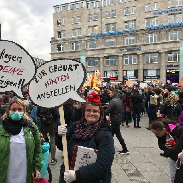 Ein Bündnis verschiedener feministischer Gruppen hat am Samstag zum feministischen Kampftag aufgerufen. Unter dem Motto "Wir kämpfen, wir streiken, wir leben" wurde für mehr Aufmerksamkeit und Würdigung von Sorgearbeit als gesellschaftliche Aufgabe demonstriert.