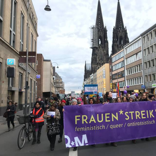 Laut, entschlossen und mit mehr Menschen als angemeldet: Rund 8.500 Teilnehmerinnen und Teilnehmer haben am Samstag zum Internationalen Frauentag in Köln demonstriert. Bei strahlendem Sonnenschein ist der Demozug durch die Innenstadt gezogen. "Yes means yes and no means no!", hieß es auf Kölns Straßen. Protestiert wurde gegen Gewalt an Frauen und das Patriarchat und für die Gleichberechtigung.