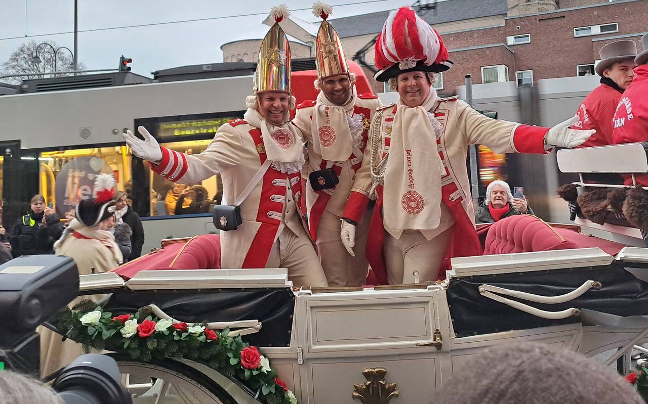 Dabei durften Niklas, Clemens und Stefan etwas erhöht sitzen. Sie wurden nämlich auf einer Kutsche durch die Stadt gefahren. Vor allem auf der Severinstraße in der Kölner Südstadt schallte immer wieder ein Alaaf über die Straße, weil so viele Jecke am Rand mit dabei waren. Die drei bekamen nach der Ankunft symbolisch den Schlüssel des Dorint-Hotels überreicht. Heute wartet auf die zukünftigen Prinz, Bauer und Jungfrau das nächste Highlight: Im Dom steigt der traditionelle Karnevalsgottesdienst.