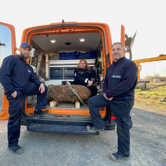 Die Bombe wurde bereits am Freitagnachmittag auf einer Baustelle am Karlheinz-Steimel-Weg gefunden. Feuerwehr und Ordnungsamt unterbrachen die bereits begonnene Evakuierung als klar wurde, dass auf den angrenzenden Schienen viele Zugwaggons mit Gefahrgut stehen. Diese wurden in der Nacht abtransportiert.