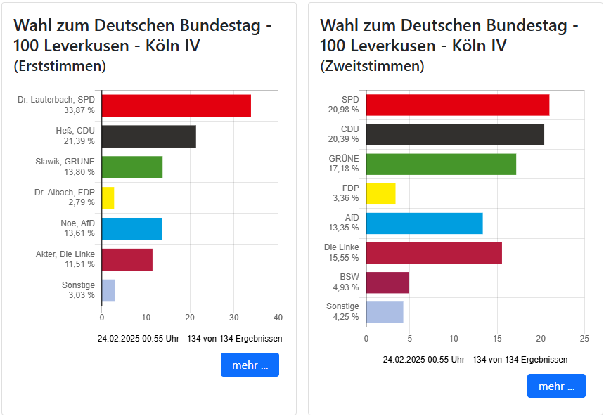 Köln III haben ebenfalls die Grünen geholt vor der SPD und CDU. Hier hat sich Grünen-Fraktionschefin Dröge knapp vor SPD-Fraktionschef Mützenich durchgesetzt.