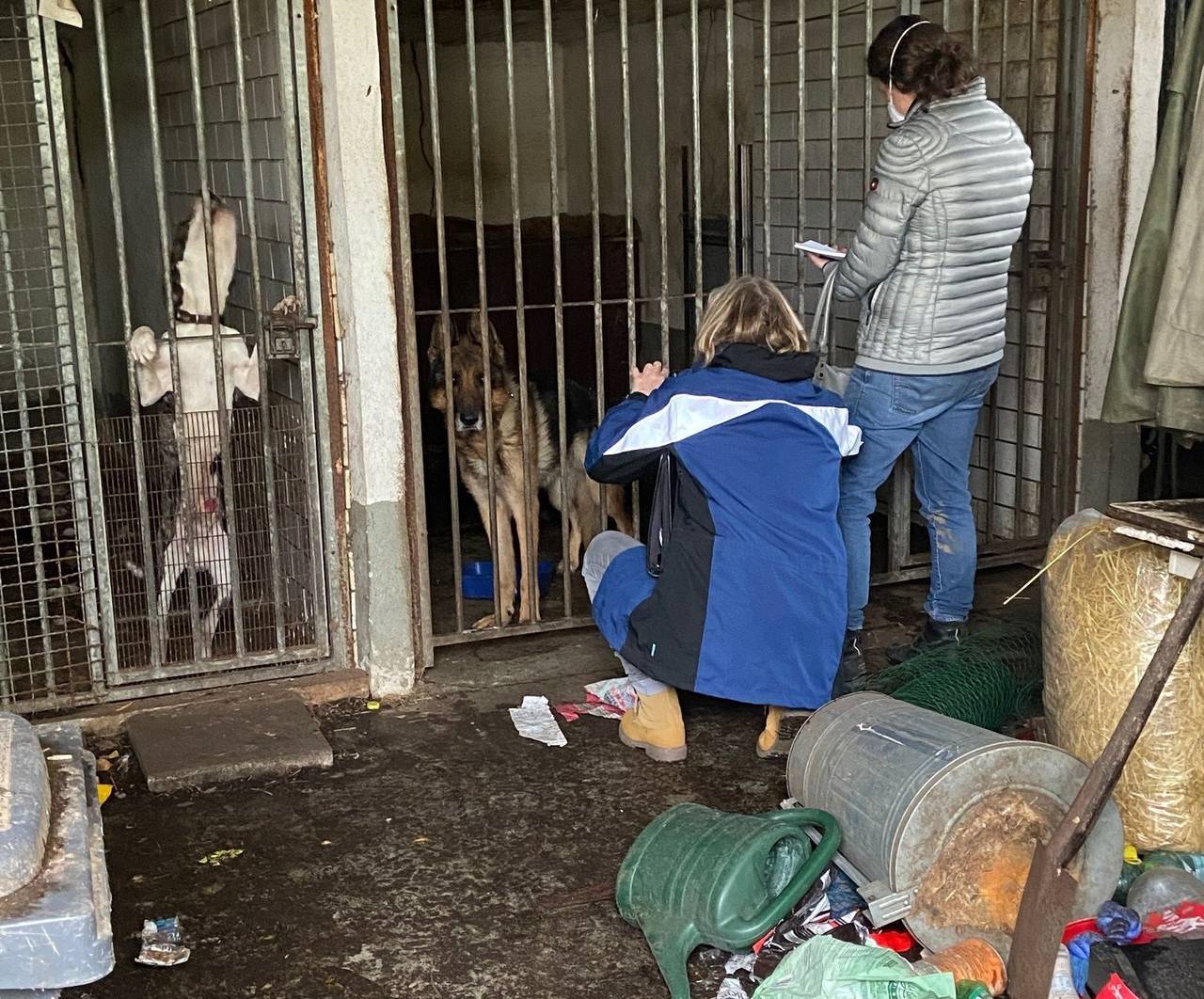 Auf dem abgelegenen Areal fanden die Einsatzkräfte versteckt in Parzellen dann die Hunde. Sie hatten weder Wasser noch Futter. Die Zwinger waren völlig verdreckt. Die Tiere waren abgemagert und wirkten völlig verstört. Es handelt sich unter anderem um Bull-Dogen, Terrier und einen Schäferhund. Alle Hunde wurden erstversorgt und sollen jetzt im Tierheim aufgepäppelt und weiter untersucht werden. Gegen die Halter und Halterinnen laufen Ermittlungen.