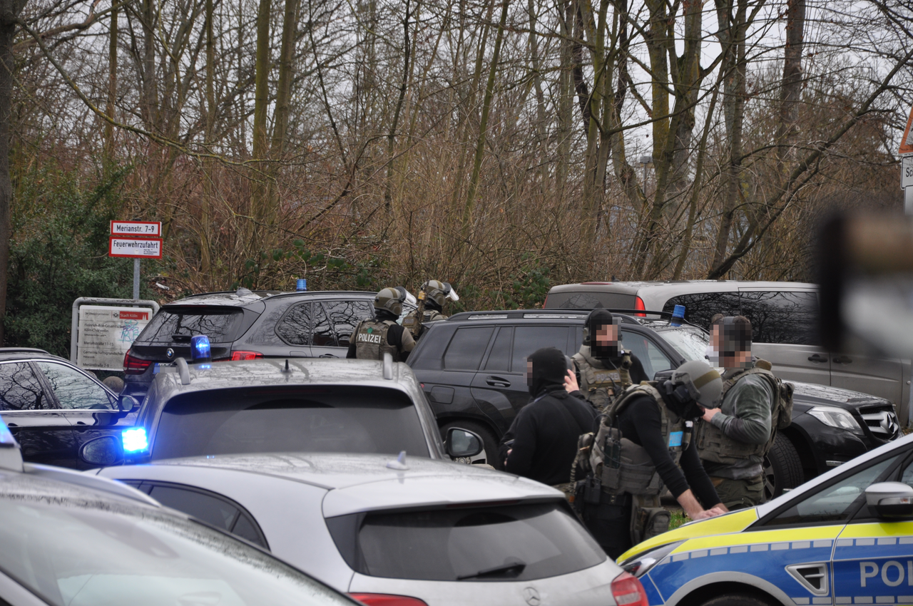 +++ 13.20 Uhr: Laut Polizei sind die Durchsuchungen beendet, vor Ort werde noch ermittelt. Es gebe keine Hinweise, dass eine reale Bedrohungssituation bestanden habe.