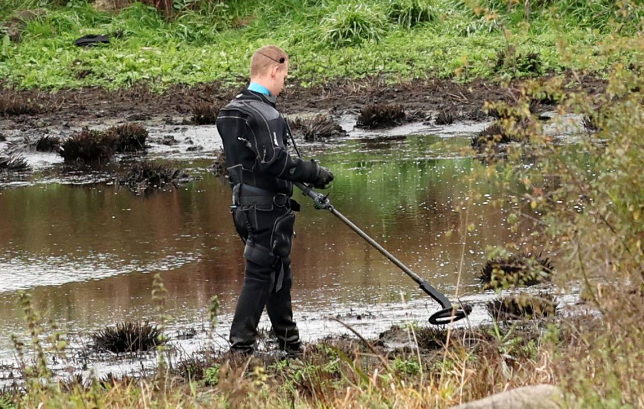 Die Polizei durchsuchte den Tümpel mit einem Detektor.