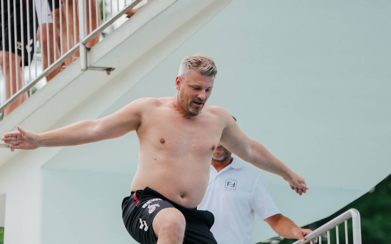 Im Trainingslager in Bad Waltersdorf stand nämlich der Fanabend auf dem Plan. Dabei gibt es immer auch mal wieder Gelegenheit mit den Profis, dem Trainer und dem Rest vom FC-Team ins Gespräch zu kommen. Apropos Trainer: Lukas Kwasniok hat den freien Tag gestern mal für ne andere sportliche Betätigung genutzt. Er war mit dem Team im Freibad. Da gab es u.a. Beachvolleyball und.... Turmspringen ;-)