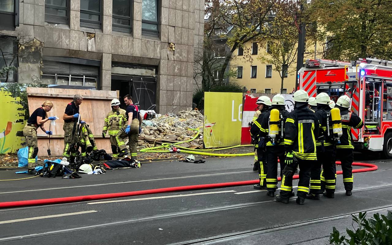 Bei Sanierungsarbeiten an dem ehemaligen Versicherungs- und Bürogebäude gegenüber vom Humboldt-Gymnasium an der Lothringer Straße ist laut Feuerwehr Dämmstoff in Brand geraten. Drei Arbeiter seien leicht verletzt worden. Das Feuer sei gelöscht. Die Feuerwehr ist jetzt noch dabei, die Räume zu lüften. Für die Arbeiten sind die Straßen gesperrt.