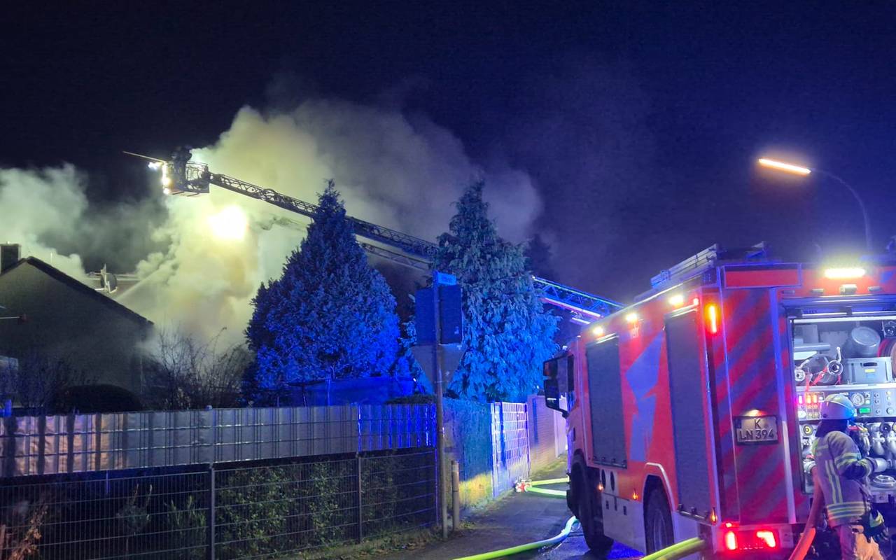 In Köln Weiß läuft aktuell ein Feuerwehr-Einsatz. In der Straße "Auf dem Klemmberg" brennt es in dem Mittelhaus eines Reihenhauses.