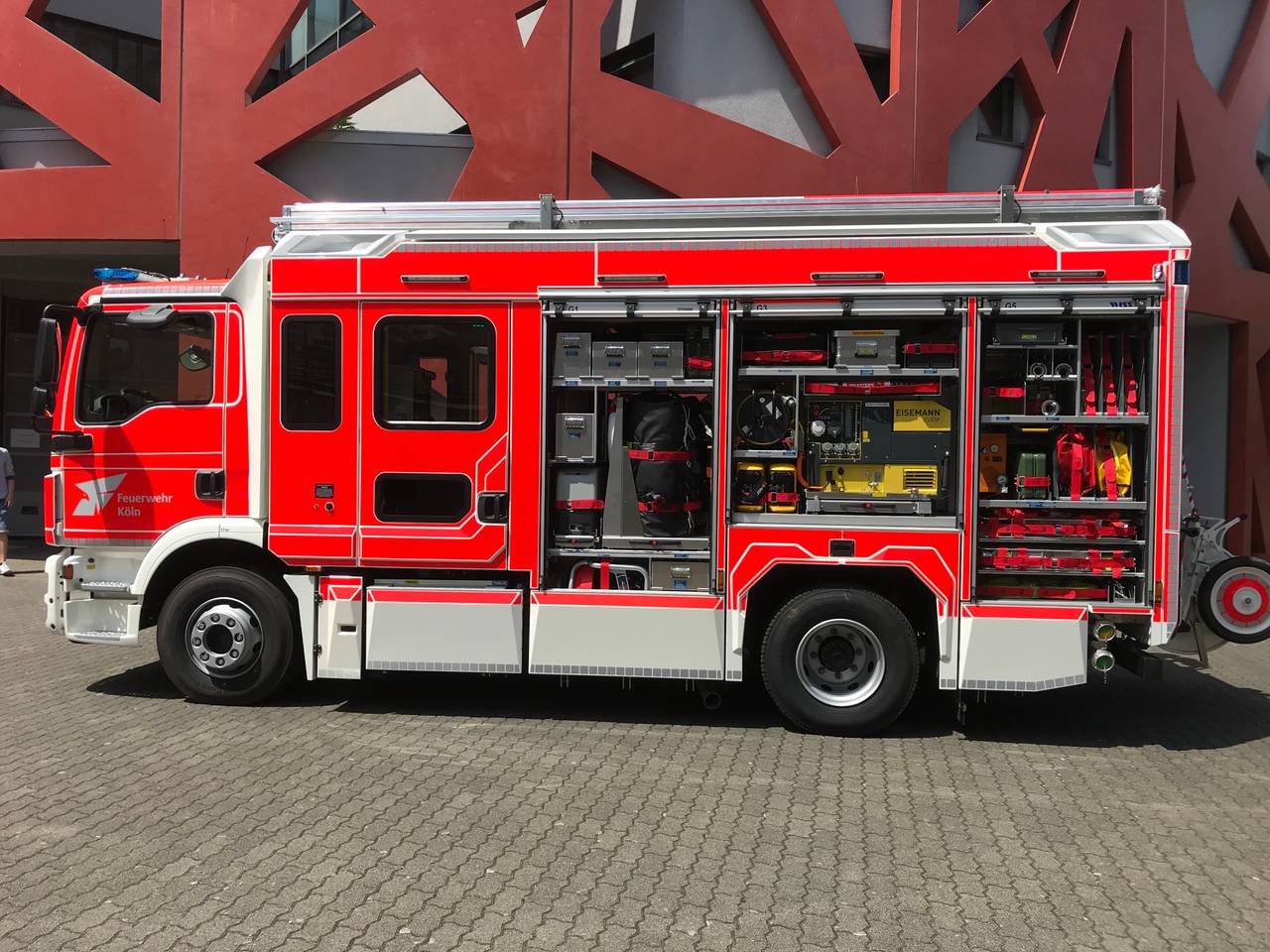 (KU) Modernste Technik, kleiner und wendiger und sicherer für Feuerwehrleute, Bürgerinnen und Bürger. Die Kölner Feuerwehr hat am Freitag den ersten von insgesamt 18 neuen Feuerwehrwagen in Betrieb genommen.