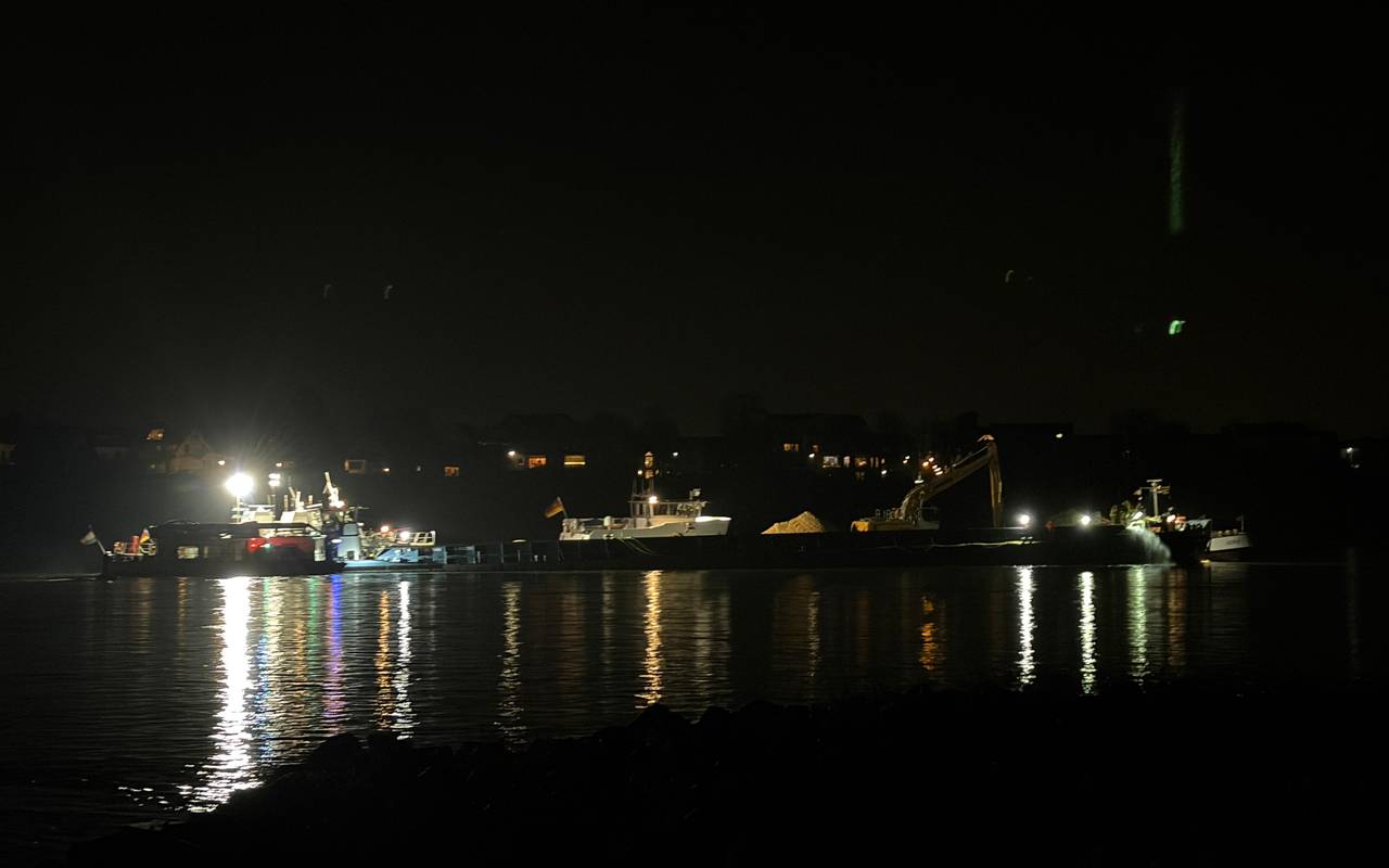 Frachtschiff läuft in Westhoven auf Grund