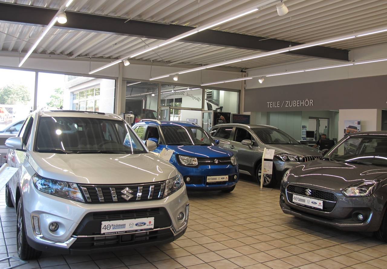 Herzlich Willkommen beim Autohaus Gebr. Bäckmann & Sassert GmbH, einem der größten Suzuki-Händler Deutschlands, sowie einer der ältesten Mazda-Vertragshändler und Ford-Servicepartner im Kölner Norden!