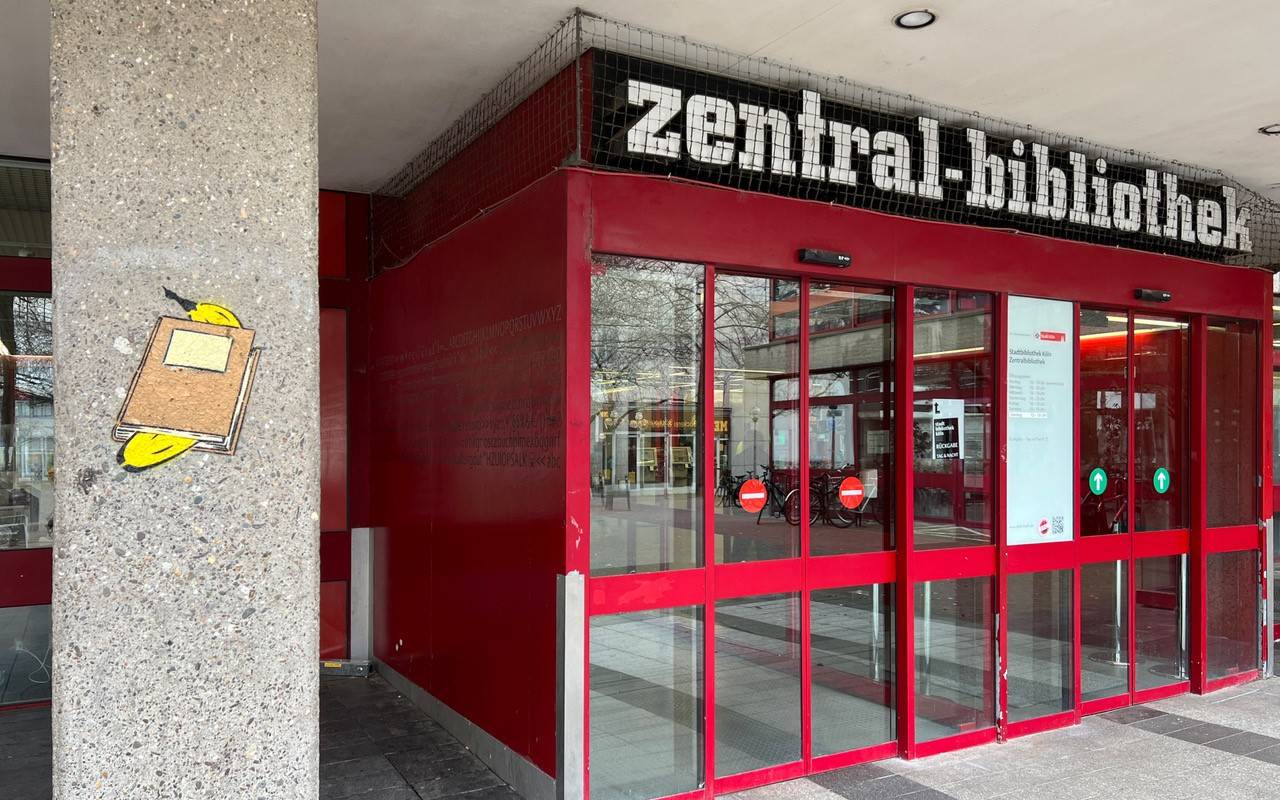 (GL) An der Zentralbibliothek am Neumarkt ist jetzt eine gelbe Spray-Banane von Thomas Baumgärtel zu sehen. Damit schaltet sich der Kölner Künstler in die Diskussion um die Zukunft der Bibliothek ein. Seit Langem wird darüber gestritten, ob das Gebäude saniert oder abgerissen wird. Eine Bibliothek sei das Herz einer Stadt, das man nicht einfach so rausreiße, so Baumgärtel.
