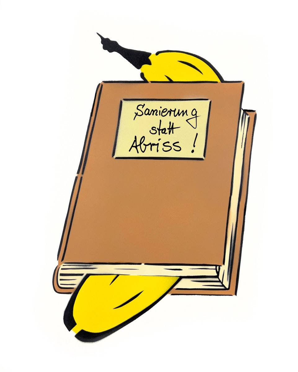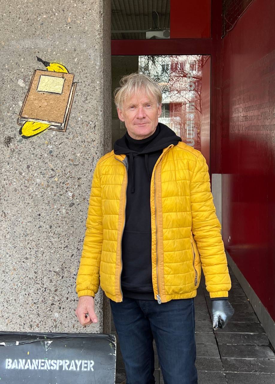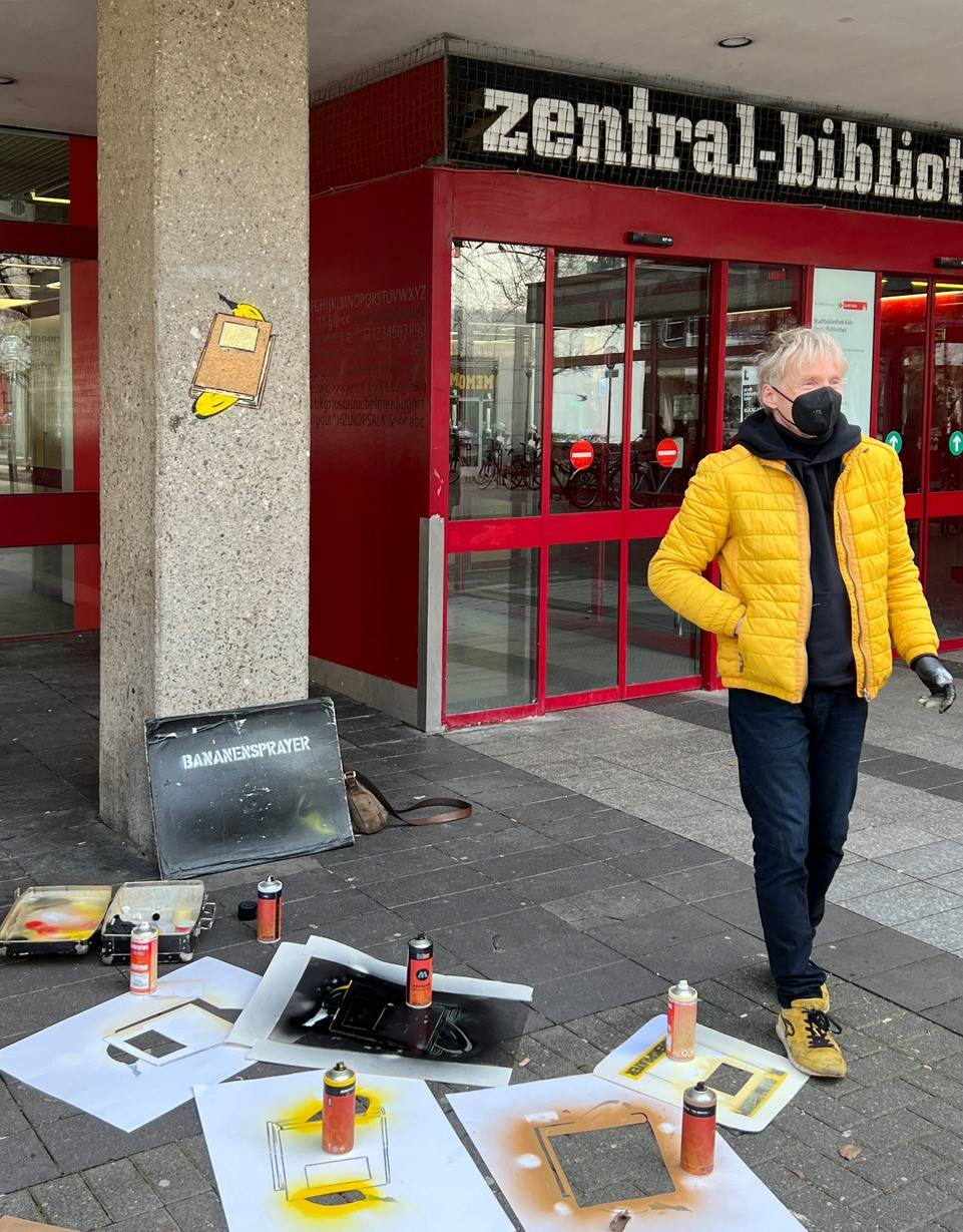 Gelbe Spray-Banane für den Erhalt der Stadtbibliothek