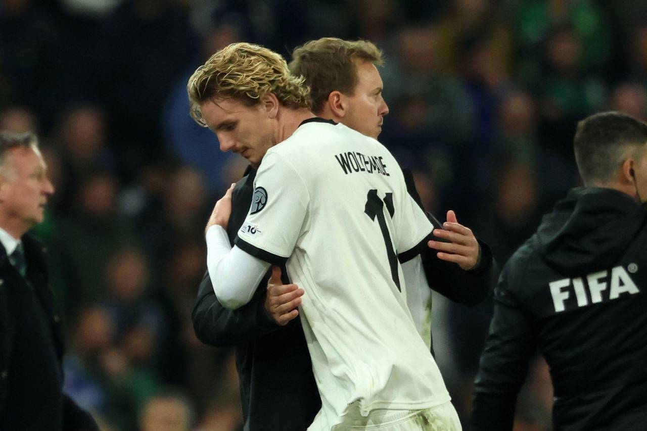 Belfast (dpa) - Nach dem Premierentreffer von Nick Woltemade im Trikot der A-Nationalmannschaft sah Julian Nagelsmann höhere Mächte am Werk. «Der große Unterschied zu den ersten Spielen von Nick für uns war, der defensive Fleiß war ein ganz anderer. Und dann ist es manchmal so, dass der Fußball-Gott dich belohnt und einem der Ball auf die Schulter fällt und du dein erstes Tor machst», sagte der Bundestrainer.