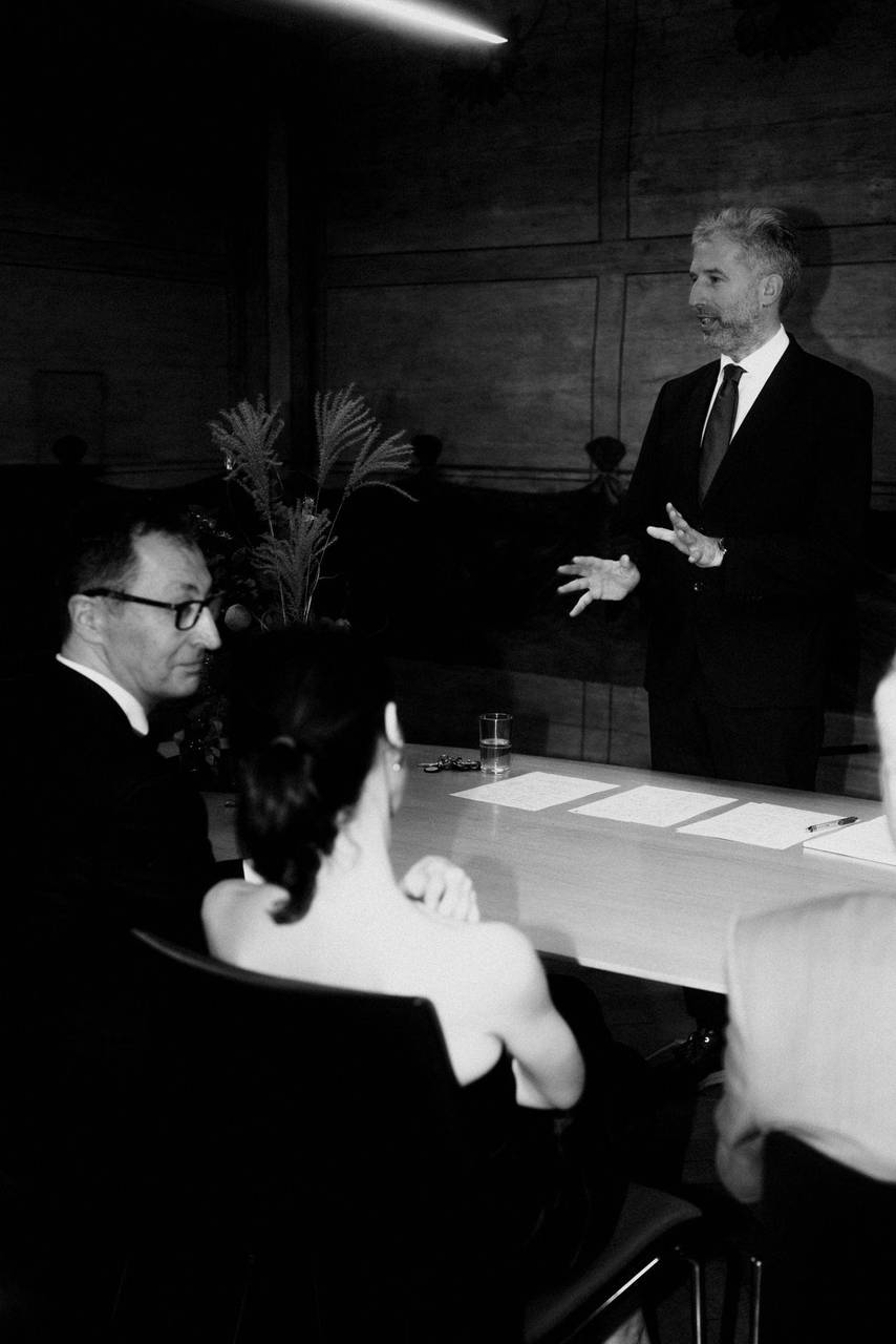 Durchgeführt wurde die Eheschließung von dem prominenten Standesbeamten und Tübinger Oberbürgermeister Boris Palmer (parteilos) in ebenfalls dunklem Anzug mit blauer Krawatte. Der Rathauschef ist der Sprecherin Özdemirs zufolge ein langjähriger Freund der Familie. Trauzeuge war der Tübinger OB allerdings mit Sicherheit nicht. Man könne nicht gleichzeitig Standesbeamter und Trauzeuge sein, hatte Palmer vor der Hochzeit erklärt. «Alles Gute dem glücklichen Ehepaar!» schrieb er Stunden nach der Trauung auf Instagram.