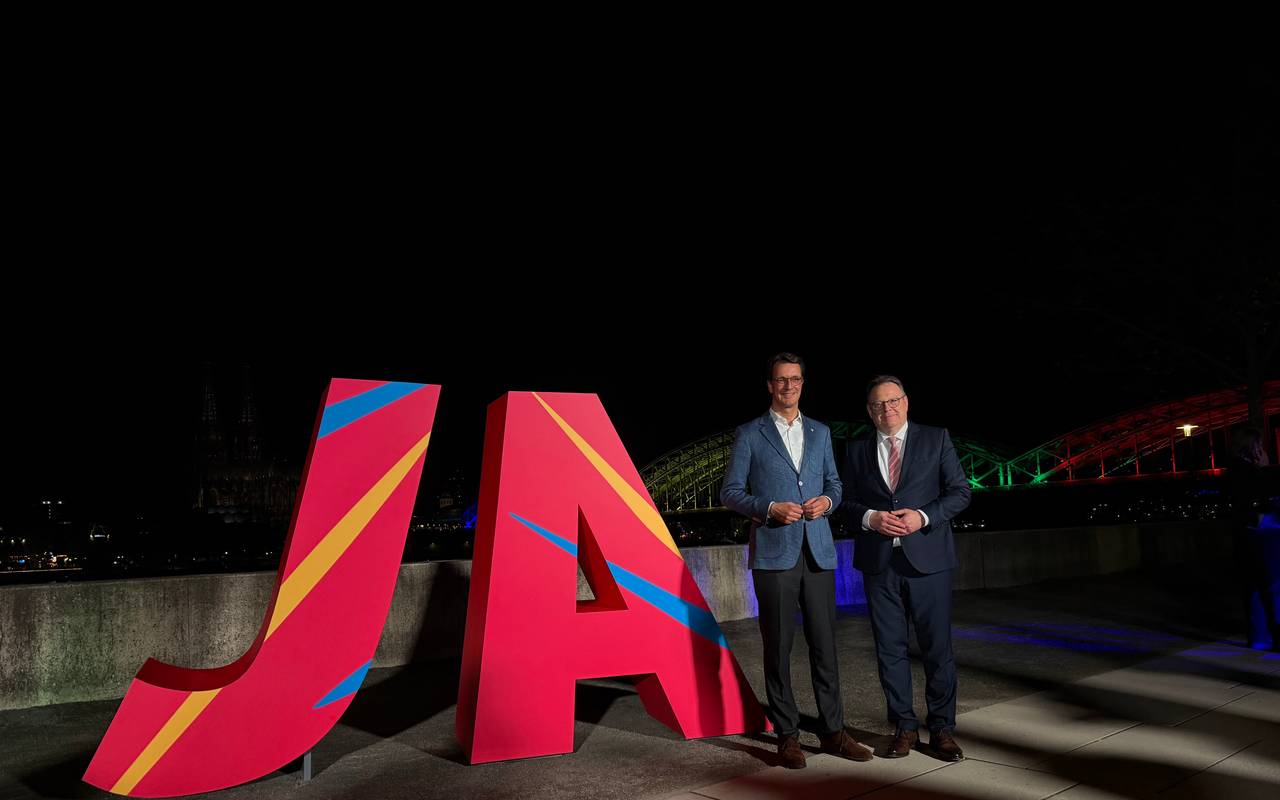 Mehr als 4 Millionen Bürgerinnen und Bürger aus 17 Kommunen durften per Ratsbürgerentscheid abstimmen. Bei der offiziellen Wahl-Veranstaltung im KölnTriangle in Deutz stand gegen 23 Uhr Uhr auch das vorläufige Ergebnis aus Köln fest. Auch Oberbürgermeister Torsten Burmester war vor Ort und hat sich ebenso wie Hendrik Wüst sehr über die Ergebnisse aus ganz NRW gefreut. Beide waren klare Befürworter der Olympia-Bewerbung. Und offensichtlich sind es die Bürgerinnen und Bürger in NRW auch. Rund zwei Drittel aller Stimmen aus den 17 Kommunen haben mit "ja" abgestimmt.