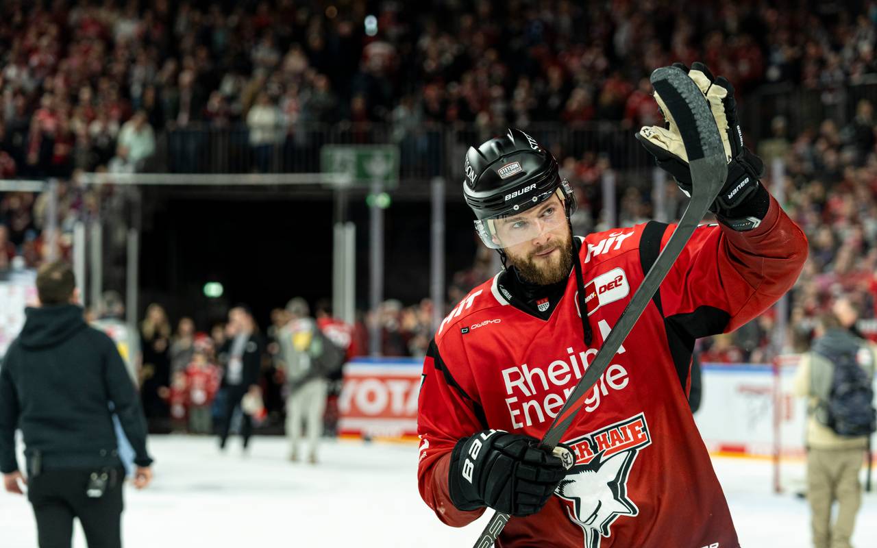 So viele Siege ist noch keiner Mannschaft in der Geschichte der Deutschen Eishockeys Liga gelungen. Nach dem Spiel ließen sich die Haie dafür gebührend von den Fans feiern. Doch am Ziel sind die Haie noch lange nicht, sagt Haie-Kapitän Moritz Müller: