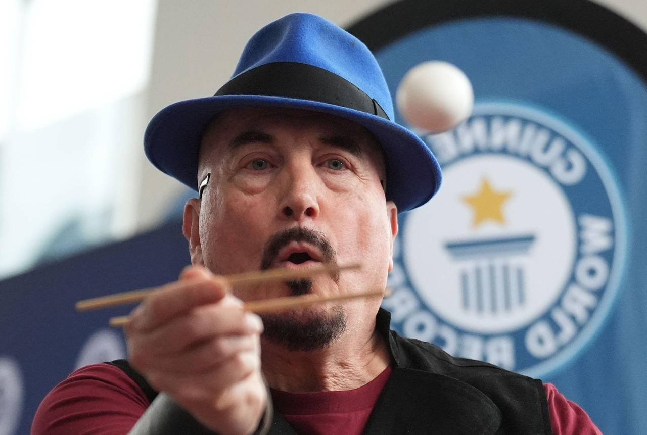 Insgesamt schaffte es Joe Alexander, elf Eier mit den Stäbchen zu fangen. © Marcus Brandt/dpa