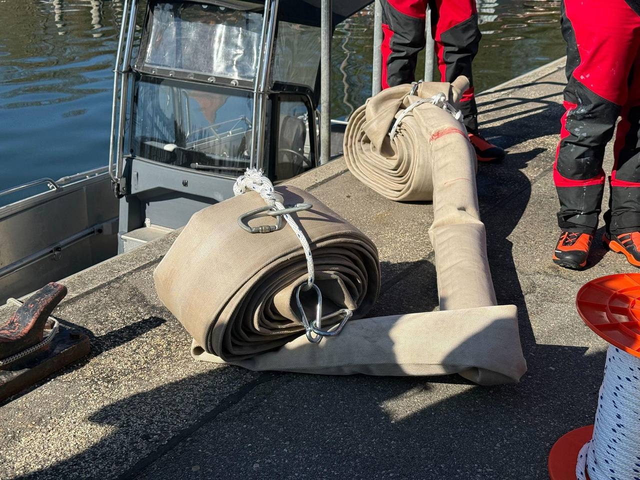 Die Behörden haben grünes Licht für die Benutzung von Gurten gegeben, um den Wal zum Transportschiff zu führen.© Helena Dolderer/dpa