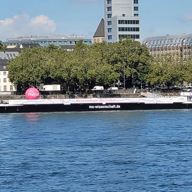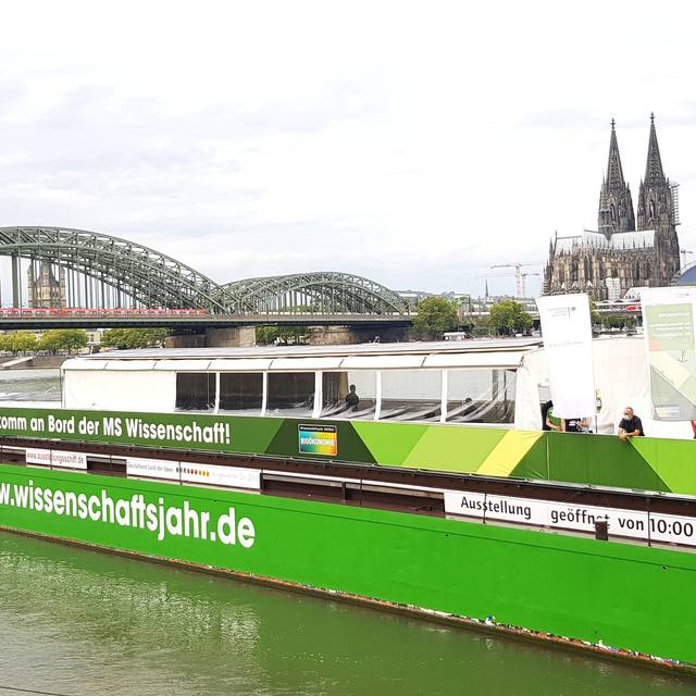 (PR|Archivbild) Am Mülheimer Rheinufer macht ab Montag ein besonderes Schiff fest. Die MS Wissenschaft legt bis einschließlich Mittwoch in Köln an.