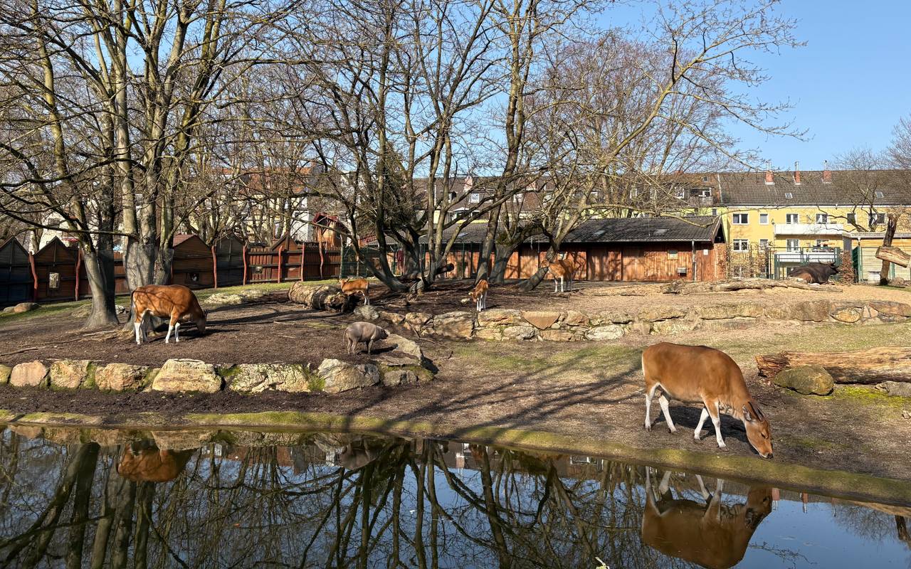 Die Kälbchen haben den selben Vater, aber zwei verschiedene Muttis – deswegen sind es Halbbrüder. Nio kam schon im November und im Januar ist dann Manik dazu gekommen. Ihre Namen stammen aus Indonesien wo ihre Art herkommen. Die beiden Kälbchen verstehen sich super, sagt Robin Lammers vom Zoo. Leider sei die Art aber stark bedroht: