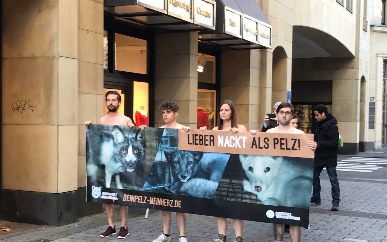 Obwohl die letzte Pelzfarm in Deutschland dieses Jahr geschlossen habe, sehe man überall an Mützen oder Jackenkragen immer noch jede Menge echten Pelz, sagt die Tierschutzorganisation. Häufig wüssten die Träger gar nicht, dass sie echte Tierfelle an ihrer Kleidung haben. Mit der Aktion am Mittwoch wollten die Tierschützer für das Thema sensibilisieren.