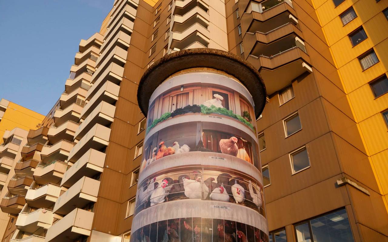 Unter anderem waren zuletzt Hühner auf ihnen zu sehen - Haltungsklassen hieß das Motiv von Künstler Jens Mühlhoff. Für das Kölner Open-Air-Museum an prominenten Standorten in der gesamten Stadt können sich jetzt wieder Künstlerinnen und Künstler bewerben.