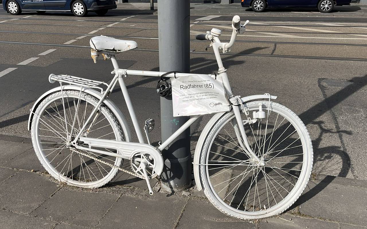 Aus einer spontanen Gedenkfahrt wurde eine weltweite Bewegung. Am dritten Mittwoch im Mai gedenken inzwischen in vielen Städten der Welt Menschen den im Straßenverkehr getöteten und verletzten Fahrradfahrern. Der Ride of Silence findet bei uns in Köln zum neunten Mal statt. Die Radfahrenden fahren dazu schweigend und meist in weiß gekleidet zu den Unglücksorten, an denen weiß lackierte Geisterräder stehen.