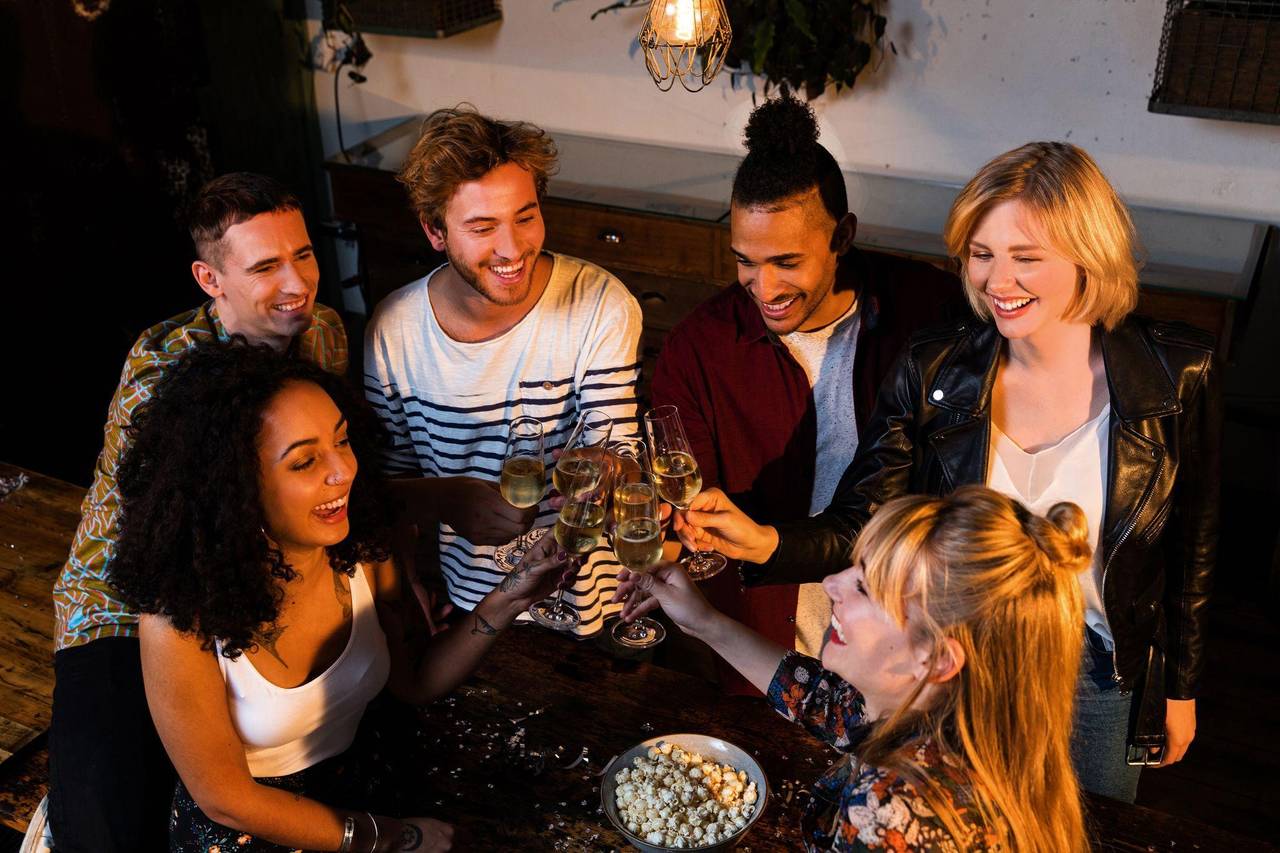 Freunde stoßen mit Sekt an