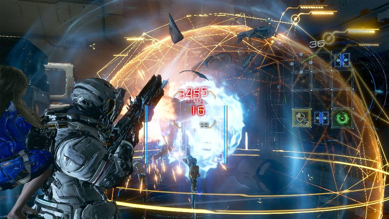 Dianas Hacking-Fähigkeit schafft eine einzigartige Spielmechanik, mit der sich «Pragmata» klar von anderen Third-Person-Shootern abhebt. Denn hier müssen die Spielenden Multitasking beherrschen.