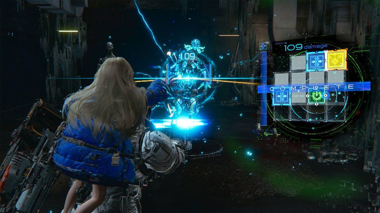 Auf Hughs Befehl hin aktiviert Diana ihr Hacking-Protokoll und auf einem Teil des Bildschirms öffnet sich ein Fenster, wo manchmal ein Labyrinth, manchmal ein freier Pfad zum Hacking-Punkt wartet. Fest steht: Wird dieser Punkt nicht erreicht, der Hack nicht abgeschlossenen, verpuffen Hughs Kugeln wirkungslos.