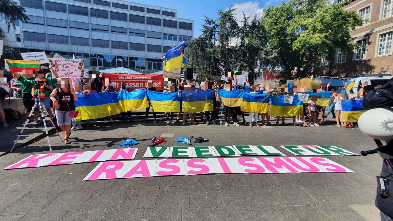 +++12:30 Bisher ist die Lage noch ruhig und die beiden Demonstranten-Lager bleiben unter sich. Die pro-russischen auf dem Roncalliplatz machen sich gerade bereit, um früher als ursprünglich geplant, schon um 13 Uhr loszuziehen. Die Polizei rechnet hier mit bis zu 2.000 Teilnehmern. Die Gegendemo von Köln gegen Rechts hält sich derweil nur wenige hundert Meter Richtung Rhein am Kurt-Hackenberg-Platz bereit. Hier werden mehrere Hundert Teilnehmende erwartet.