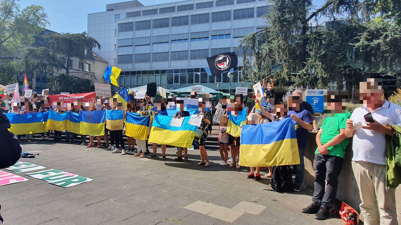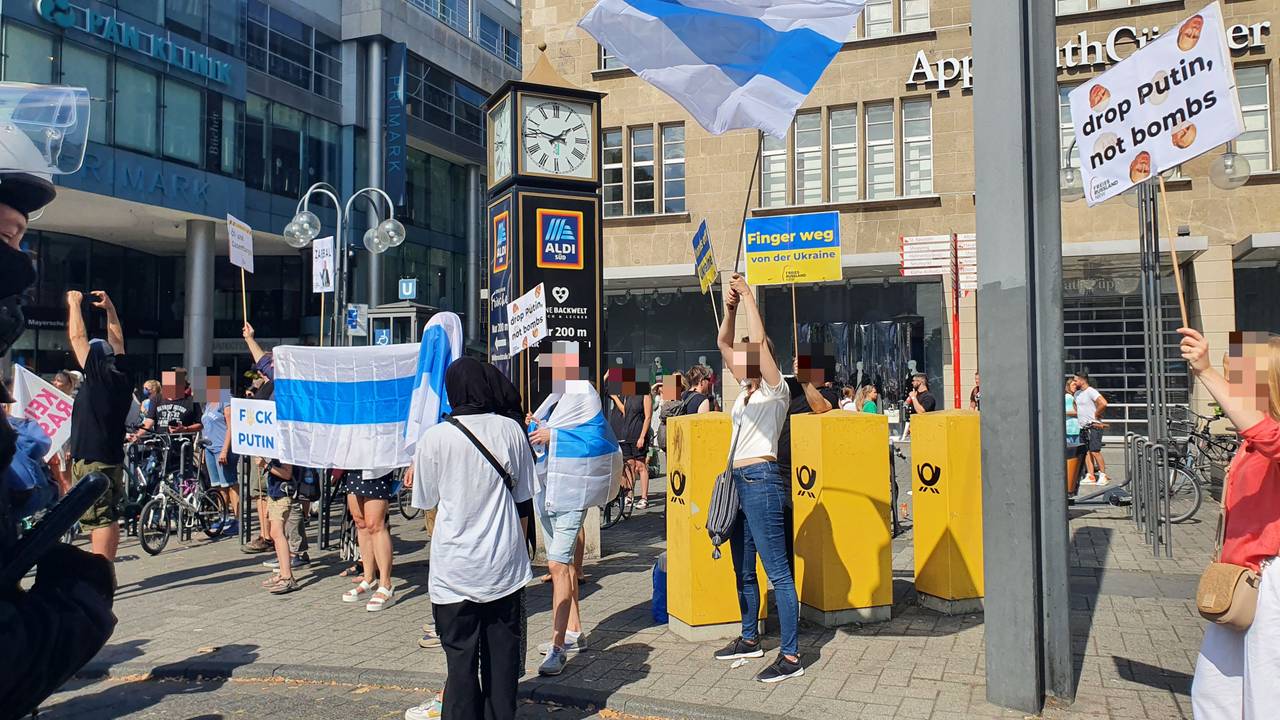 +++14:45 Statt 2000 Teilnehmenden waren nach Polizei-Schätzungen rund 800 Teilnehmende auf der pro russischen Demo dabei. Es gab kleinere Tumulte, die die Polizei aber schnell wieder unter Kontrolle bringen konnte. Außer ein paar Platzverweisen gab es keine größeren Probleme. Die pro-russischen Teilnehmer haben sich wieder auf dem Roncalli-Platz eingefunden und es laufen die Abschlusskundgebungen.