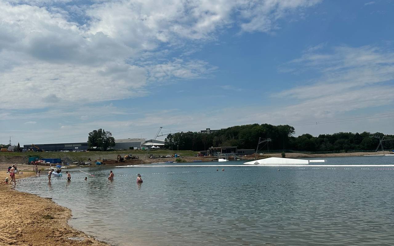 In den letzten eineinhalb Jahren wurde am Seeufer ein Badestrand gebaut. Dieser hat seit einigen Wochen geöffnet und zieht viele Gäste an. Gerade in den letzten heißen Tagen sind hunderte Menschen vorbeigekommen, hat uns Andre van den Höövel, Geschäftsführer von WakeClubCologne, gesagt: