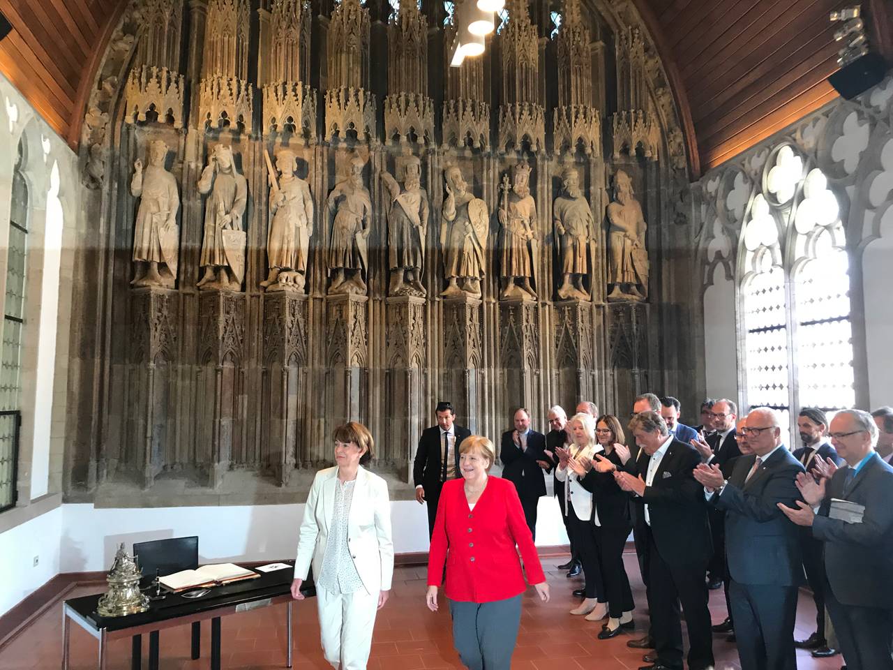 (DC) Das goldene Buch der Stadt Köln ist um einen prominenten Eintrag reicher. Bundeskanzlerin Merkel hat sich zum ersten Mal als Kanzlerin dort verewigt.