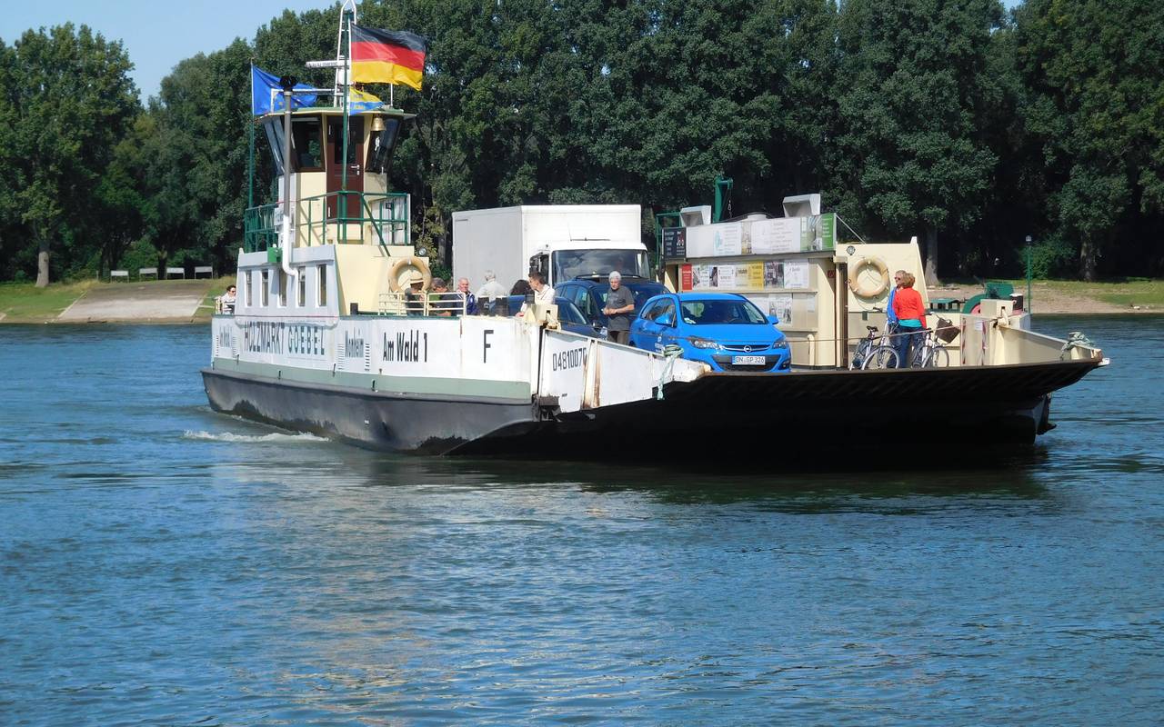 (LE|Archivbild) Die Rheinfähre zwischen Langel und Hitdorf musste heute ihren Betrieb einstellen, obwohl sie erst seit drei Wochen nach einer langen Pause wieder unterwegs war. Grund dafür sei ein Getriebeschaden, heißt es von der Stadt Leverkusen. Die gibt aber vorsichtige Entwarnung.