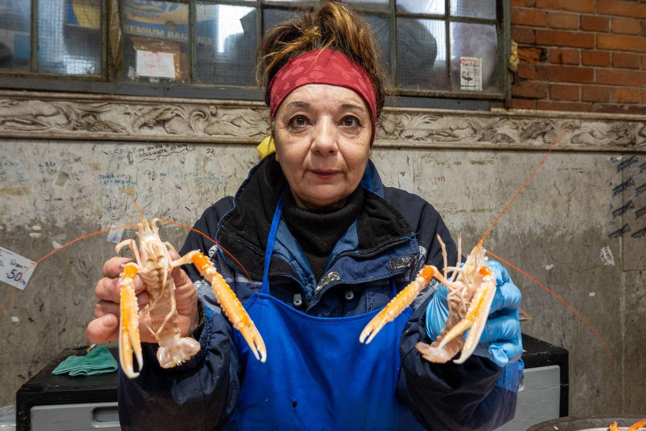 Snježana Sironić verkauft in der Fischhalle Rijeka Scampi. © Andreas Drouve/dpa-tmn