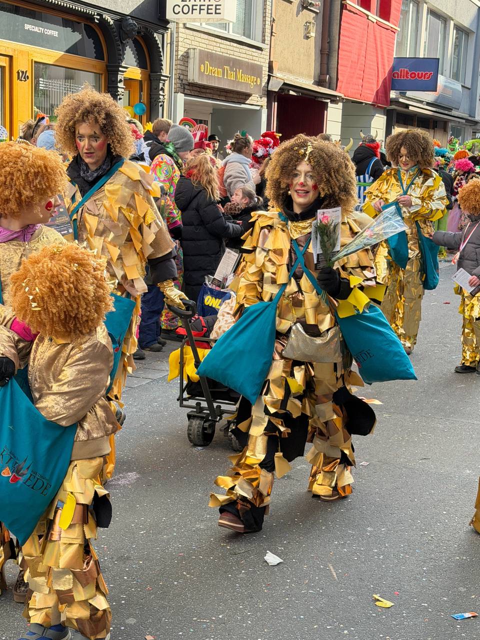 Unsere Reporterinnen Gesa de Martin und Rebecca Otten berichten live für euch von der Severinstraße! Die Gruppen ziehen durch die Severinstorburg und über die Severinstraße weiter Richtung Innenstadt. Die Zugwegstrecke ist fast so lang wie die morgen an Rosenmontag.