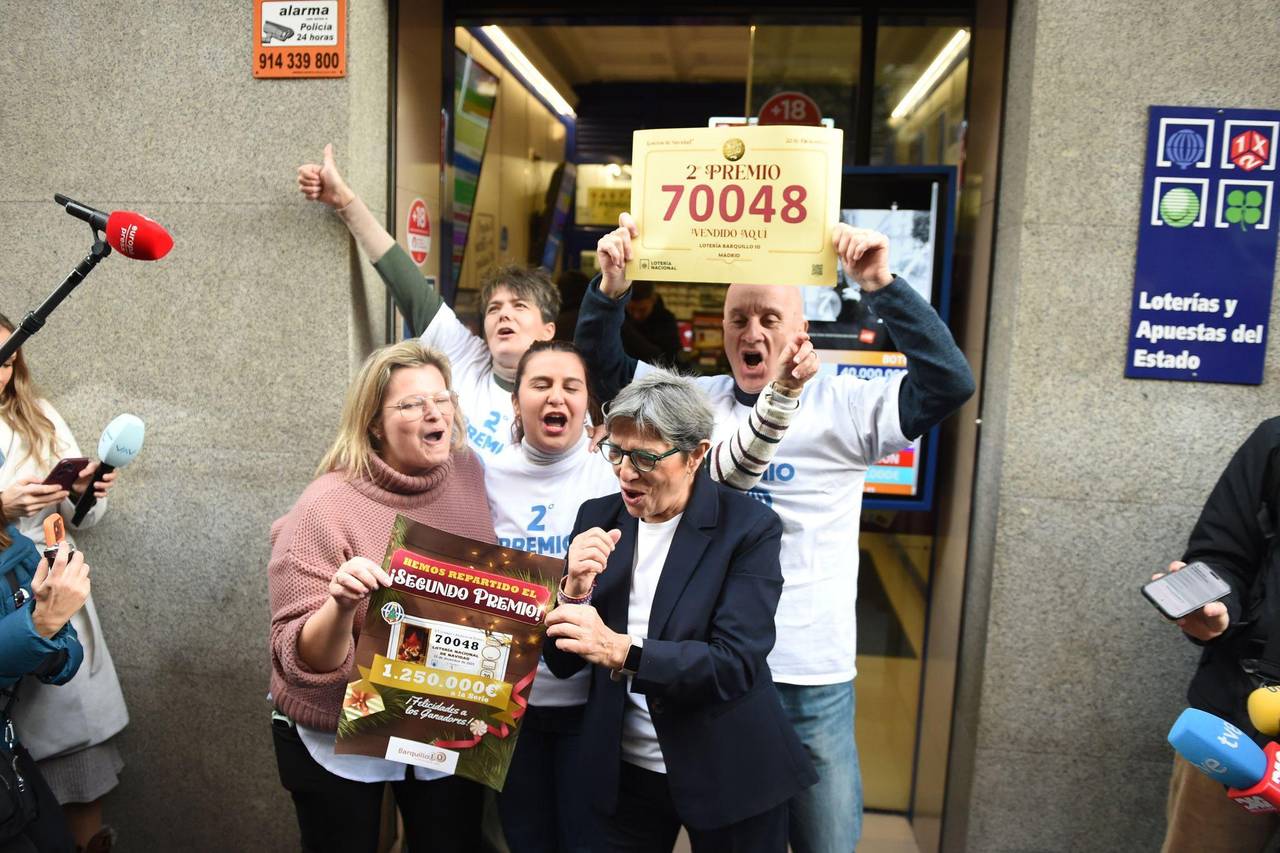 Der zweite Preis über 1,25 Millionen war bereits 15 Minuten nach Beginn der Lotterie gezogen worden. Er ging an die Nummer 70.048. Prompt versammelten sich jubelnde Menschen mit Sektflaschen vor der Verkaufsstelle im Madrider Stadtviertel Chueca, die alle 198 Auflagen des Glücksloses verkauft hatte. «Das ist der Hammer, die Käufer sind mehrheitlich ganz normale Leute aus der Nachbarschaft», sagte der Verkaufsstellenbetreiber vor den RTVE-Kameras.