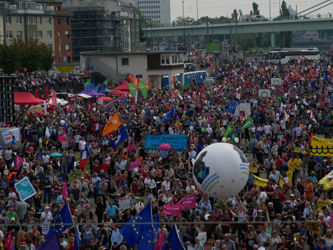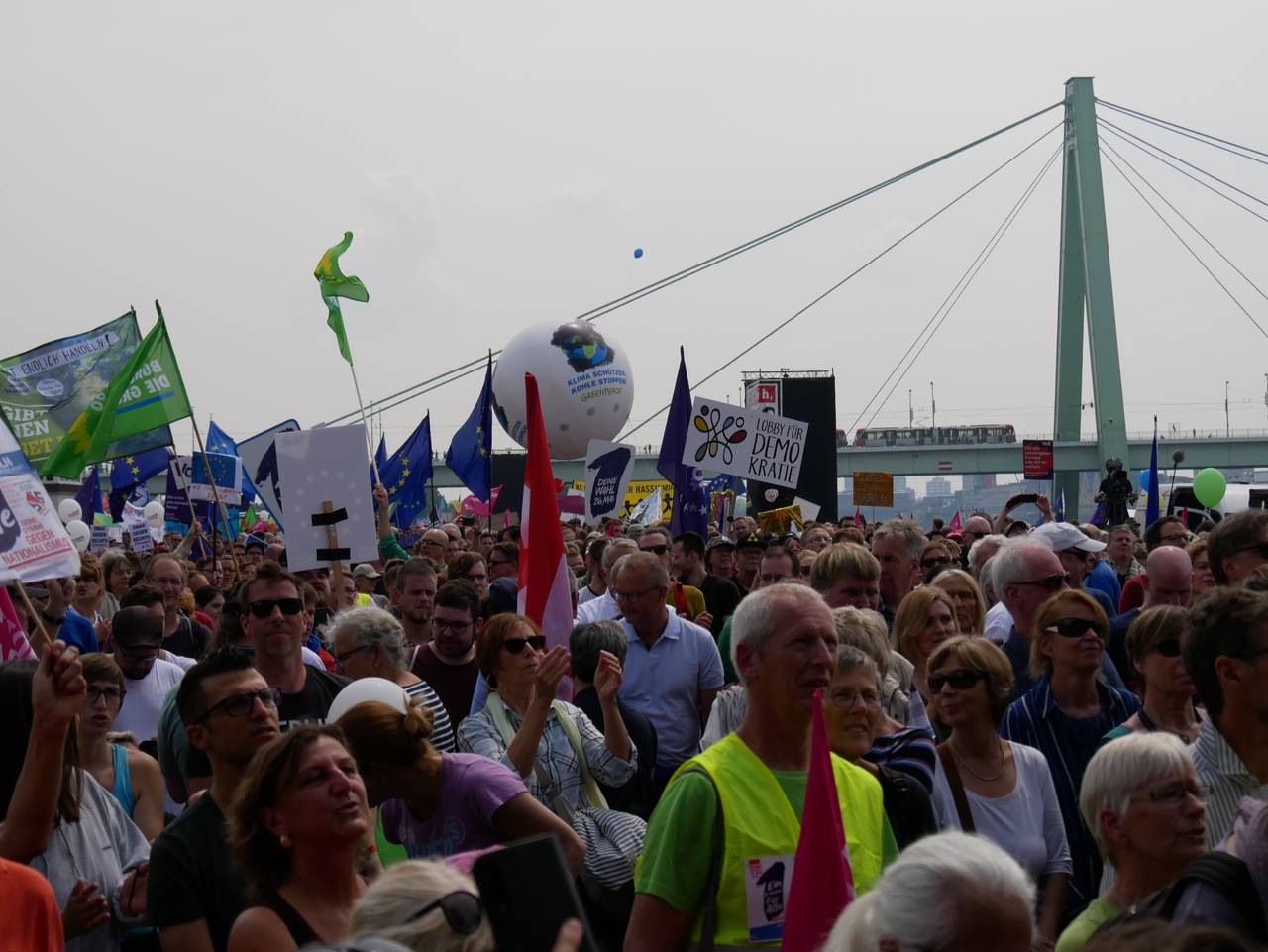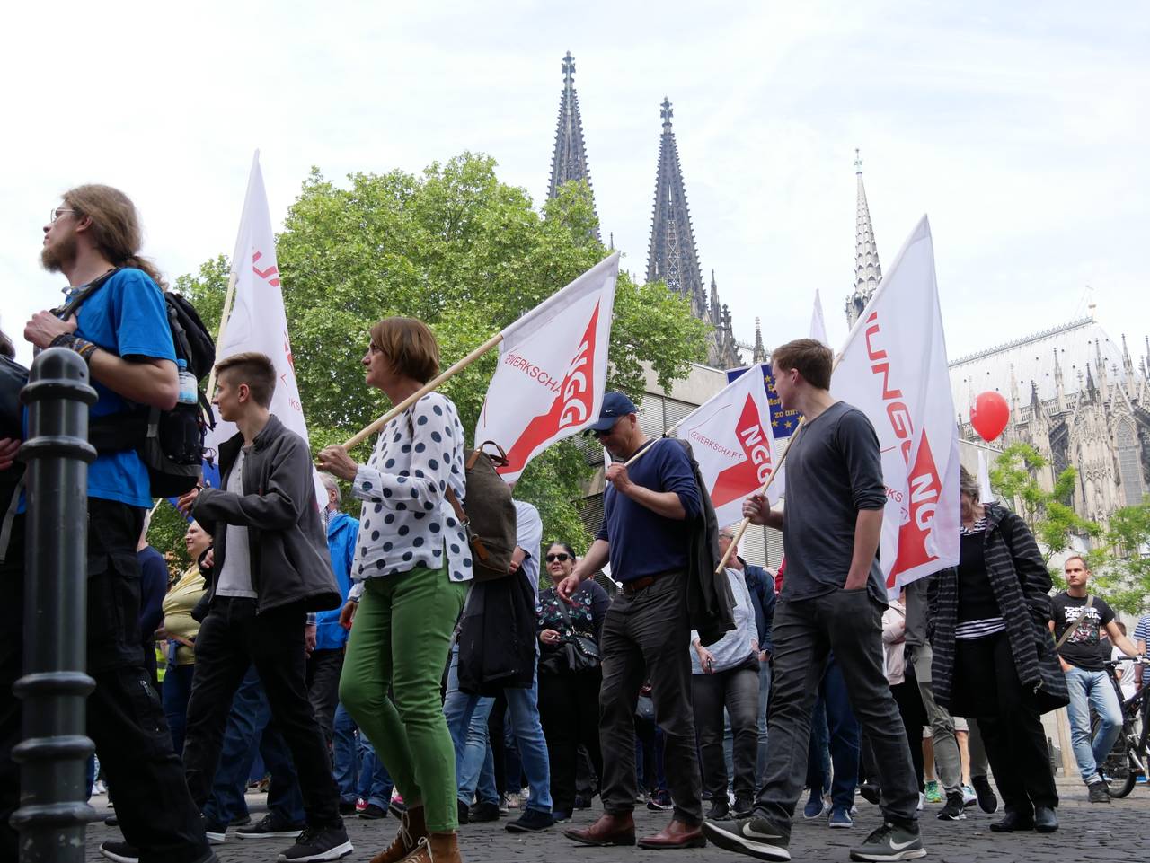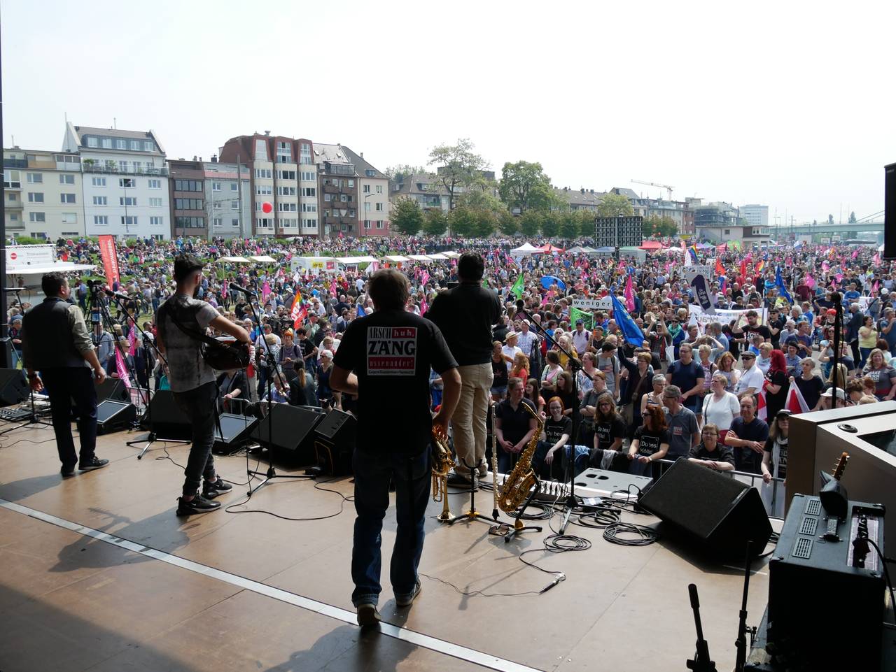 12.40 Uhr: Die ersten Demonstrationszüge sind inzwischen an der Deutzer Werft angekommen, andere sind noch in der Innenstadt unterwegs. Auf der Bühne hat das Vorprogramm begonnen; um 13 Uhr startet das Hauptprogramm.