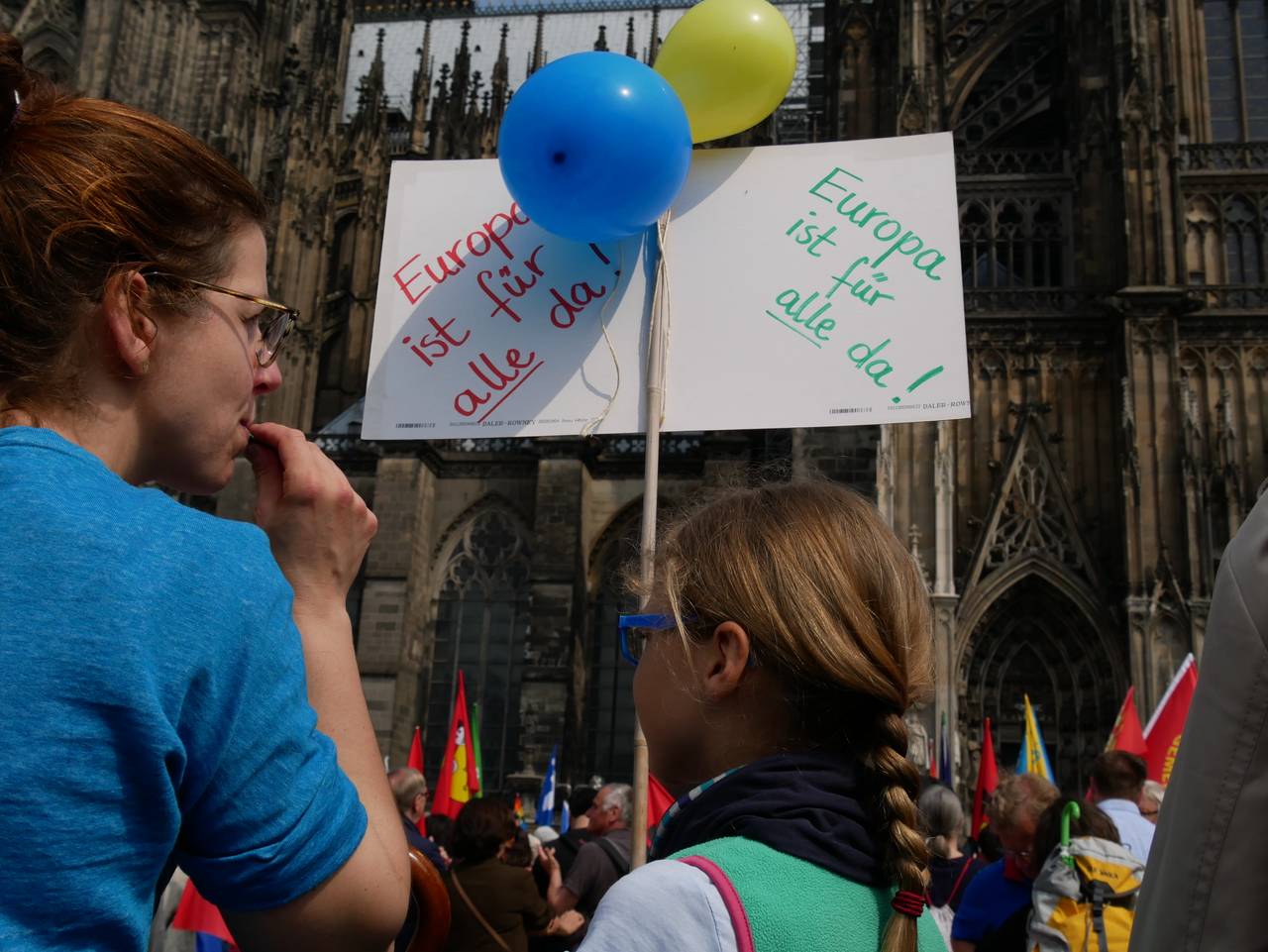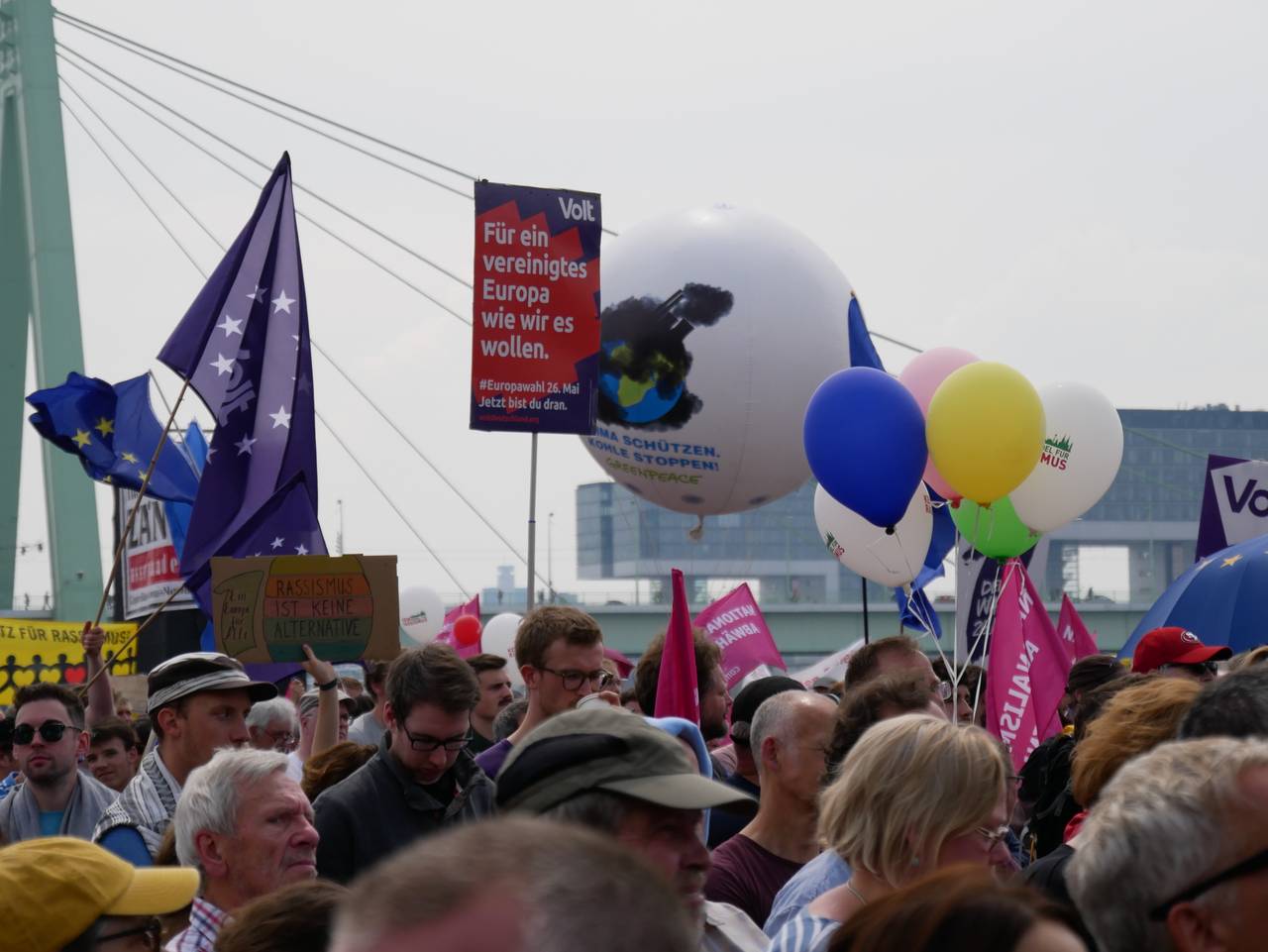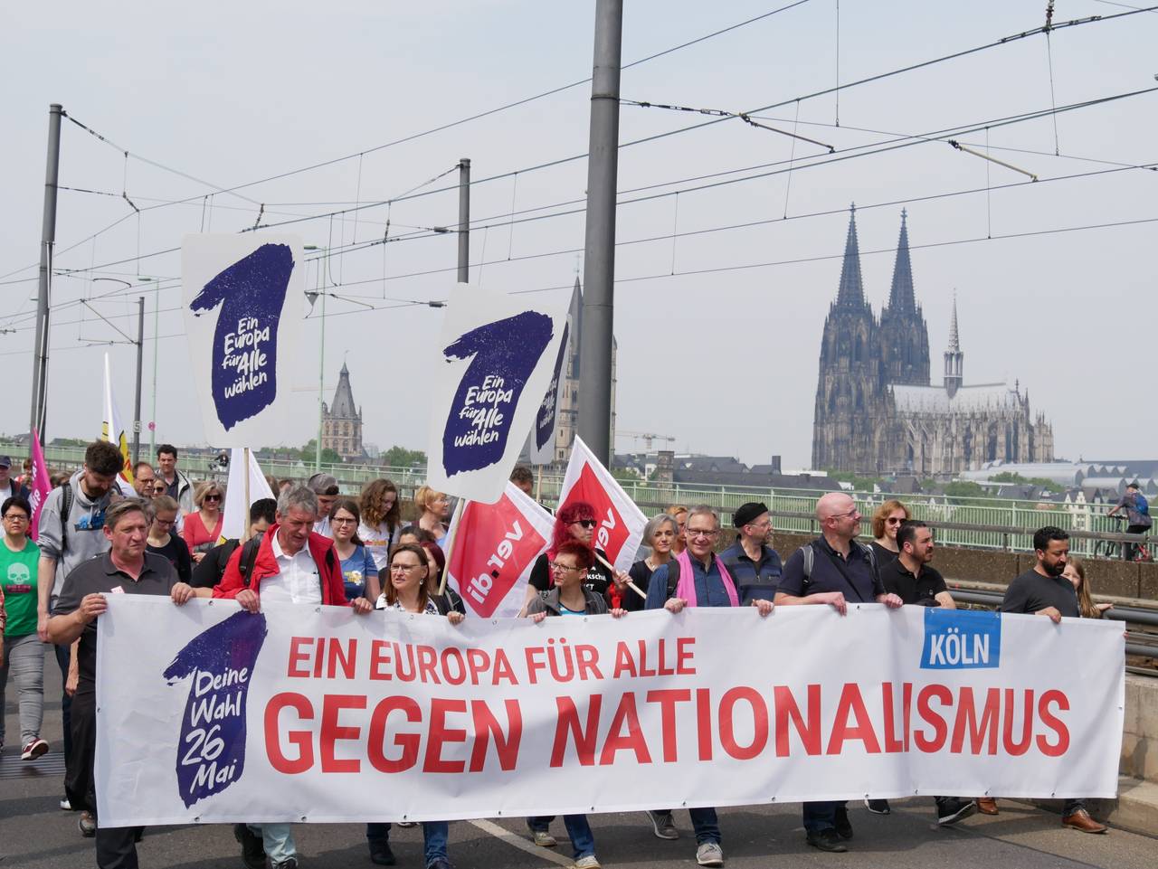 Eine Woche vor dem Urnengang stand Köln am Sonntag komplett im Zeichen der Europawahl. Ein Bündnis aus über 70 Verbänden und Organisationen hatte für Sonntag unter dem Motto „Ein Europa für alle – Deine Stimme gegen Nationalismus“ zu einer Demo an der Deutzer Wert aufgerufen.